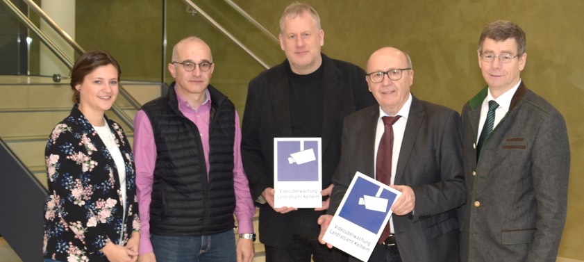 Kelheims Landrat Martin Neumeyer (Zweiter von rechts) und einige Behörden-Mitarbeiter: Schilder weisen auf die Video-Überwachung hin.