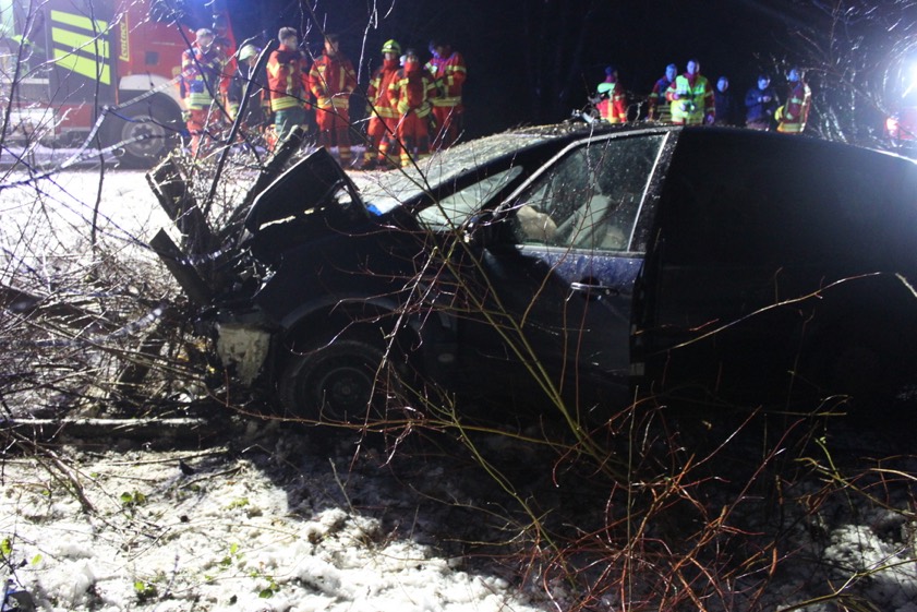Pkw kam zwischen Langquaid und Bachl von der Staatsstraße ab und rauschte in eine Baumgruppe.