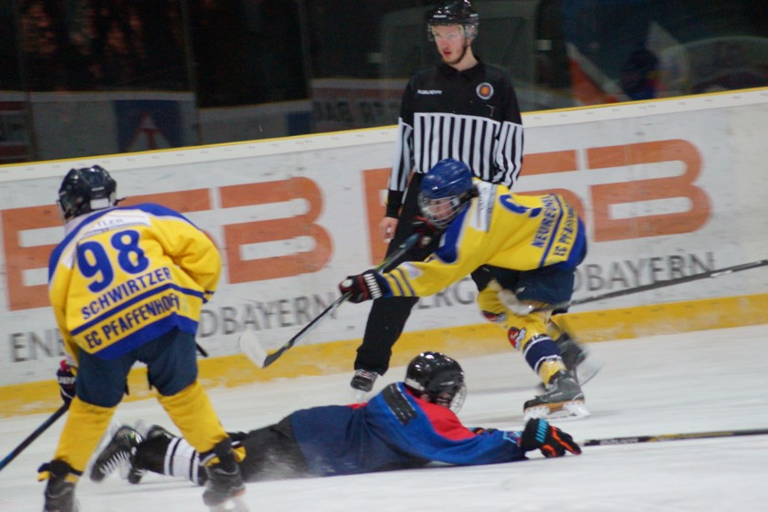 Mit 7:3 wurde zum Jahres-Endspurt die SG Hassfurt/Kissingen bezwungen, deren starke Gegenwehr das ECP-Team offenbar nicht erwartet hatte. Viel schwerer als noch im Weihnachtsspiel gegen den Tabellendritten VER Selb, dem man beim 10:0 mit sehenswert herausgespielten Treffern bei hohem Tempo keine Chance ließ, tat sich gestern der IceHogs-Nachwuchs und kam fast bis zum Ende des zweiten Drittels über eine 3:1-Führung nicht hinaus. Zu aggressiv verteidigten die Gäste, zu wenig Pässe der Pfaffenhofener fanden ihr Ziel.