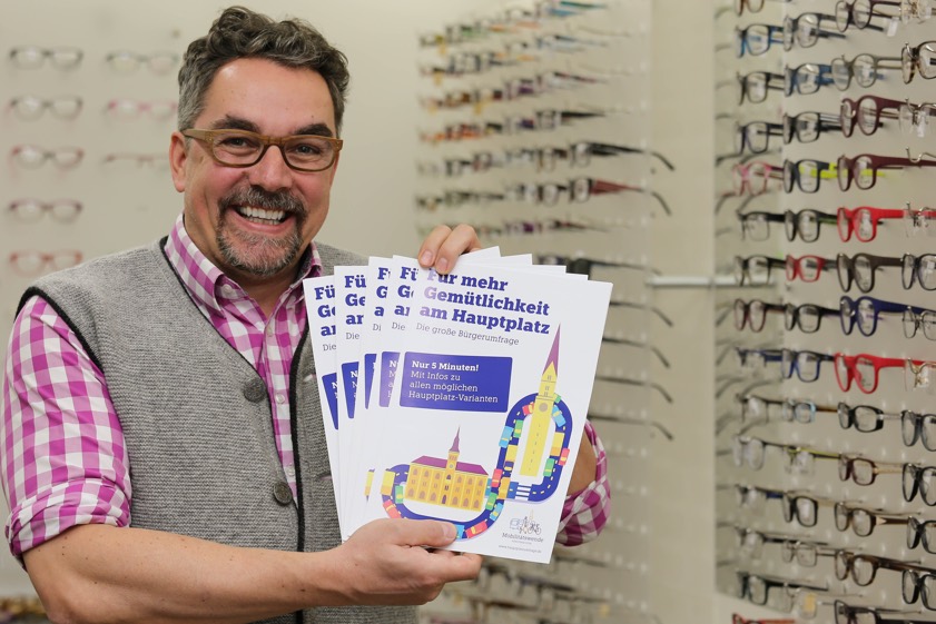Rudolf Wildmoser von "City-Optik" in der Löwenstraße erklärt, warum er die Aktion unterstützt: "Die Umfrage ist in meinen Augen jetzt schon ein Erfolg. Es wird darüber geredet und jeder kann seine Meinung bilden und äußern. Ich finde es auch super, dass die Umfrage auch andere Aspekte der Innenstadt aufgreift. Es geht ja schließlich nicht nur um Parkplätze oder die Durchfahrt."