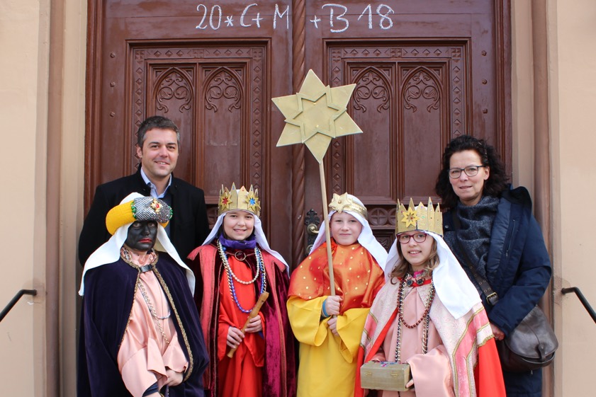 Die Spendensammlung der Sternsinger steht – wie berichtet – heuer unter dem Motto „Gemeinsam gegen Kinderarbeit in Indien und weltweit“. Die Sternsinger der Pfaffenhofener Stadtpfarrei sind bereits seit Mittwoch in 13 Gruppen im ganzen Stadtgebiet unterwegs. Auch an der Rathaustür brachten sie ihr Zeichen „20 C+M+B 18“ an, das sich aus der aktuellen Jahreszahl und dem lateinischen Segensspruch „Christus mansionem benedicat“ (Christus segne dieses Haus) zusammensetzt.