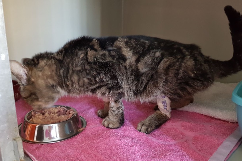 Am Donnerstag sei in der Pfaffenhofener Tierherberge die Meldung über die nicht gekennzeichnete Fundkatze „mit offensichtlich erheblichen Bewegungs-Einschränkungen der Hinterläufe“ eingegangen, berichtet Lydia Schübel, die Sprecherin des Tierschutzvereins. Das „dehydrierte und hochgradig unterernährte“ Tier sei vom Finder direkt in die mit der Tierherberge zusammenarbeitende Kleintierpraxis in der Kreisstadt gebracht worden. „Zur Stabilisierung wurde die geschwächte Katze umgehend an einen Tropf gehängt.“