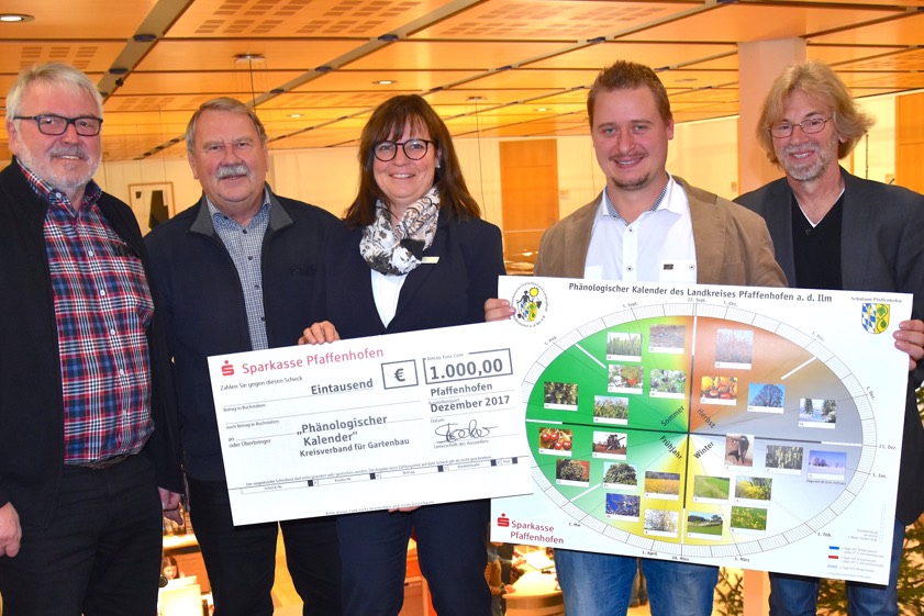 (ty) Abläufe in der Natur kann man nicht in Terminpläne zwängen, aber man kann sie beobachten und Schlüsse daraus ziehen. Genau dies ist die Intension des phänologischen Kalenders, der vom Pfaffenhofener Kreisgartenbauverein erstellt und zusammen mit dem Schulamt an die Schulen verteilt wurde. Möglich gemacht hat dies auch heuer eine Spende der Sparkasse Pfaffenhofen über 1000 Euro. Den symbolischen Scheck überreichte das stellvertretende Vorstandsmitglied Ingrid Stocker (Foto oben).