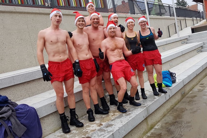 (ty) Am Dienstag war die schlechte Nachricht gekommen: Das legendäre Donau-Schwimmen in Neuburg wurde wegen des Hochwassers abgesagt. Das wollten die Manchinger Wasserwachtler aber so nicht hinnehmen, sie haben deshalb kurzerhand ihr eigenes Winter-Schwimmen organisiert. Die Unerschrockenen sprangen zwar heute nicht die Donau, aber immerhin die Paar. Und es kamen auch nicht über 2000 wagemutige Teilnehmer, sondern es waren nur acht Recken, die sich in die Fluten stürzten. Aber die zogen es wirklich eiskalt durch: Alle gingen ohne Neopren-Anzug ins Wasser. Sie trugen nur Schuhe, eine signalrote Wasserwacht-Badehose, Handschuhe – und eine Mütze.
