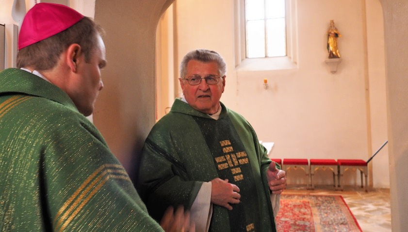 An diesem Wochenende hatten sich die drei kleinen Pfarreien St. Michael in Affalterbach, St. Germanus in Gundamsried und St. Sebastian in Uttenhofen besonders herausgeputzt: Nach 44 Jahren war nämlich erstmals wieder ein Bischof zu Gast. Weihbischof Florian Wörner kam zur so genannten Visitation und zeigte sich in zwei Heiligen Messen und zahlreichen Gesprächen mit den Gläubigen als Ordinarius zum Anfassen. Der Ortspfarrer Pater Alois Gurtner sollte Recht behalten: „Auch ein Bischof ist ein einfacher Mensch, mit dem man reden kann!“