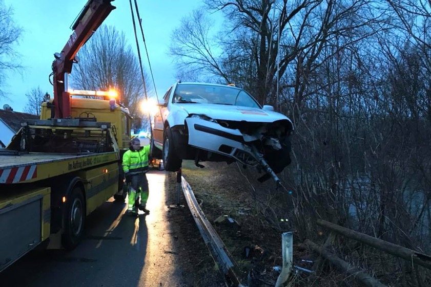 (ty) Heute Morgen kurz nach 6 Uhr war der deutlich alkoholisierte 23-jähriger Pfaffenhofener mit seinem VW Golf auf der Dachauer Straße in Ottershausen in Richtung Haimhausen unterwegs, als der krasse Unfall geschah, der wohl auch hätte tödlich enden können. In einer leichten Linkskurve geriet der junge Mann laut Polizei mit dem Pkw nach links von der Strecke ab und prallte frontal in eine Leitplanke. "Die Stahlträger der Leitplanke rammten sich bis zur Heckscheibe durch das Fahrzeug", berichtet das Dachauer THW. Doch der 23-Jährige hatte einen Schutzengel.