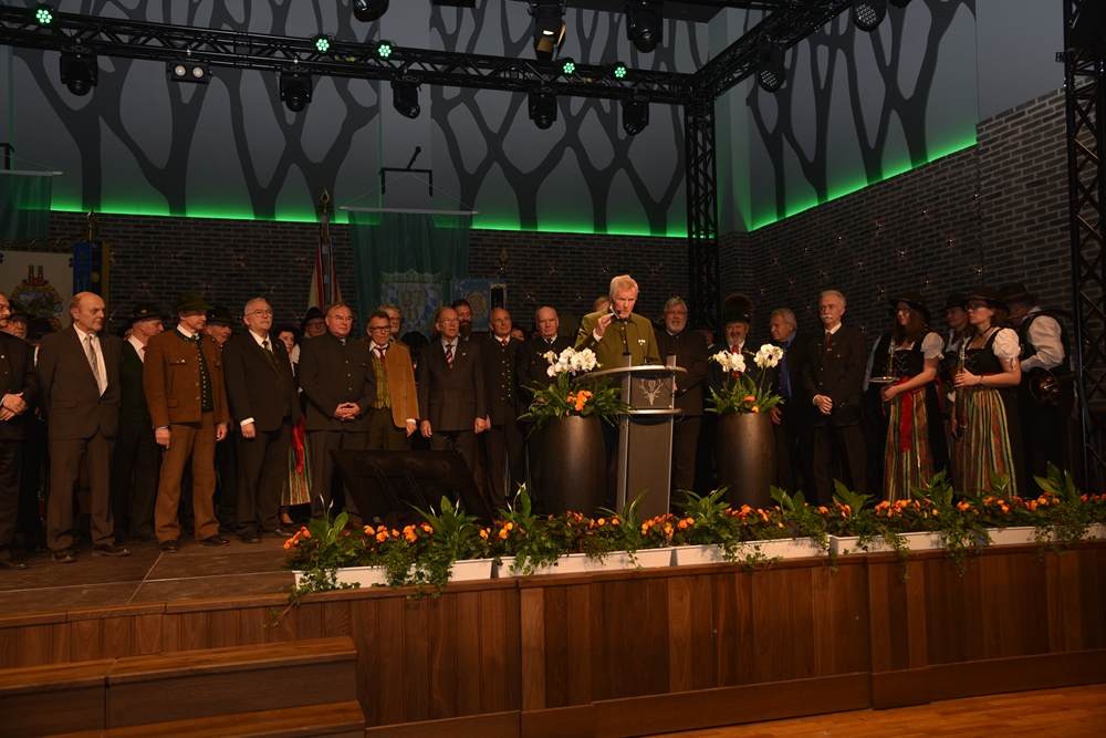 Vocke hob die gute Vernetzung der Jagd in Politik und Gesellschaft hervor und bemerkte in seiner Begrüßungsrede, dass die Jagd ohne gesellschaftliche Akzeptanz nicht möglich sei. Bayerische Jäger stünden ohne Wenn und Aber für den Muttertierschutz sowie einen würdevollen Umgang mit Wildtieren. "Wir lassen uns nicht zu Schädlingsbekämpfern degradieren", sagte Vocke vor dem Hintergrund der Diskussionen um den vermehrten Abschuss von Schwarzwild, unter anderem um zu verhindern, dass sich die Afrikanische Schweinepest auch im Freistaat breitmachen kann.