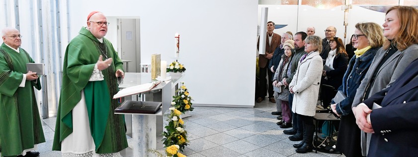 (ty) Am Faschings-Sonntag feierte der Erzbischof von München und Freising, Reinhard Kardinal Marx, zusammen mit zahlreichen Gläubigen, Diakon i. R. Sebastian Lenz aus Schwaig und Flughafen-Seelsorger Franz Kohlhuber erstmalig eine Heilige Messe in der Christophorus-Kapelle am Münchner Airport. Unter den Teilnehmern war auch Flughafen-Geschäftsführerin Andrea Gebbeken.