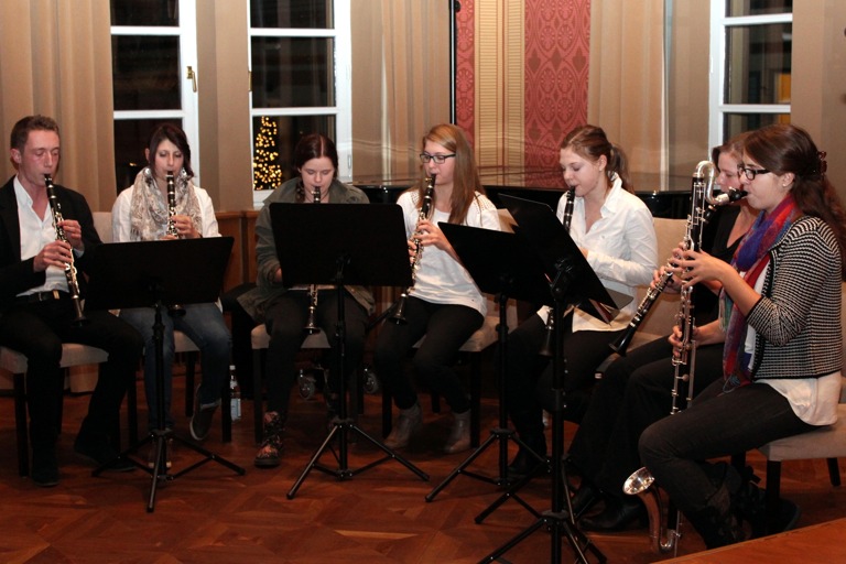 Musikalische Umramung: Das Klarinetten-Ensemble der Städtischen Musikschule.