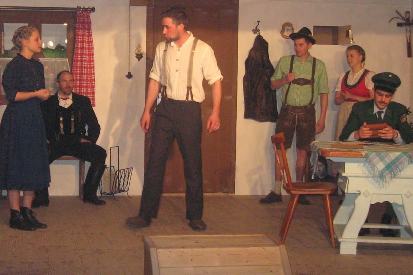 Verraten sei aber, dass dem Theater-Ensemble des Volksvereins Edelweiß ein Glücksgriff mit diesem Stück gelungen ist. Dabei überzeugten Korbinian Stampfl als Nikodemus Sterntaler, Tanja Ehrmaier als neugierige Haushälterin Cordula und Markus Fischaleck als Wendelin Kloiber im „Almöhi-Outfit“ besonders. Sehr authentisch waren auch Matthias Kaindl, der den bissigen Gendarm Helldobler mimte, und die Dorfratschn „Seeleitnerin“ – gespielt von Veronika Heckmaier. Die passenden Kostüme sowie die Maske von Rosmarie Huber, Lena Franke und Jürgen Götz trugen ihr Übriges bei und unterstrichen die Rollen. Auch die Bühnenbau-Truppe um Martin Riedl sowie die Bühnenmaler Ludwig Deller und Bernhard Ziegltrum hatten exzellente Arbeit getan. Erfreulicherweise nahezu arbeitslos blieb an diesem Premieren-Abend die Souffleuse Lena Kreitmayr.