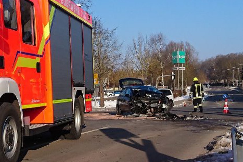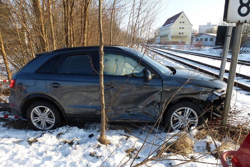 Die beiden Fahrzeuge kollidierten auf der Kreuzung so heftig, dass der Audi ins Bankett geschleudert wurde und unmittelbar vor den Bahngleisen zum Stehen kam. Durch den Zusammenstoß wurden die beiden Opel-Insassen sowie der Audi-Fahrer verletzt. Die Beifahrerin des 23-Jährigen blieb laut Mitteilung der Polizei unversehrt.