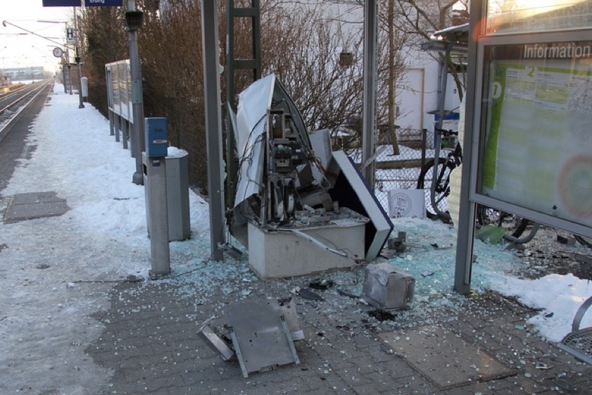 (ty) Bisher unbekannte Täter haben gestern am frühen Morgen einen Fahrkarten-Automaten am Bahnhof in Grub (Landkreis Ebersberg) gesprengt (Foto oben). Bei der Tatausführung wurde eine blaue Farbpatrone des Security-Packs einer Geldkassette ausgelöst. Der Schaden wurde um 5.23 Uhr von einem Passanten bemerkt. Dies ist die zweite Fahrkarten-Automaten-Sprengung am Bahnhof in Grub binnen kürzester Zeit. Bereits am 16. Februar war dort selbiges passiert. In beiden Fällen wird der Sachschaden auf mehr als 60 000 Euro geschätzt.