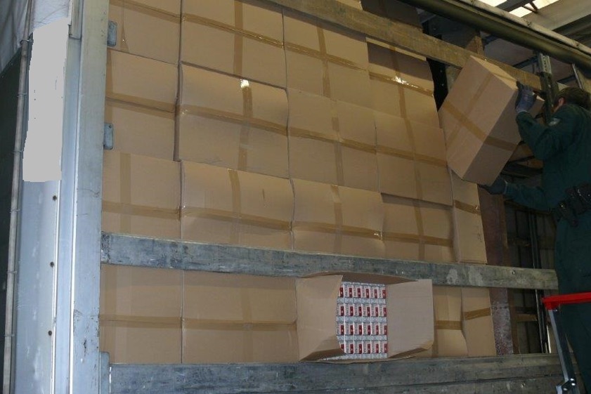(ty) 2,5 Millionen unversteuerte Zigaretten wollten zwei Lkw-Fahrer aus Südosteuropa nach Deutschland einschmuggeln. Beamte des Hauptzollamts Regensburg zogen den aus Tschechien kommenden Sattelzug aber nahe Waidhaus auf der A 6 aus dem fließenden Verkehr und brachten das Fahrzeug zur genaueren Überprüfung in eine nahegelegene Halle. Bei der Röntgenkontrolle des Lkw stellten die Beamten dann laut Mitteilung des Zoll Unregelmäßigkeiten im Fahrzeug-Aufbau des Aufliegers fest. „Daher öffneten die Zöllner die Schiebeplane und fanden eine doppelte Stirnwand vor. In dem so geschaffenen Hohlraum befanden sich 250 Kartons mit insgesamt 12 500 Stangen unversteuerte Zigaretten verschiedener Marken.“