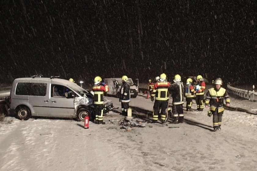„Die fünf Insassen – allesamt leicht verletzt – konnten gerade noch ihren Pkw verlassen, als ein nachfolgender 54-jähriger Klein-Lkw-Fahrer aus Rosenheim aufgrund überhöhter Geschwindigkeit bei winterlichen Straßen- und Sichtverhältnissen nicht mehr rechtzeitig anhalten konnte und auf den Klein-Lkw auf der rechten Spur auffuhr“, heißt es im Bericht der Mainburger Polizei. Der auffahrende Klein-Lkw sei anschließend nach rechts von der Autobahn abgekommen, habe die Leitplanke überfahren und sei schließlich umgekippt.