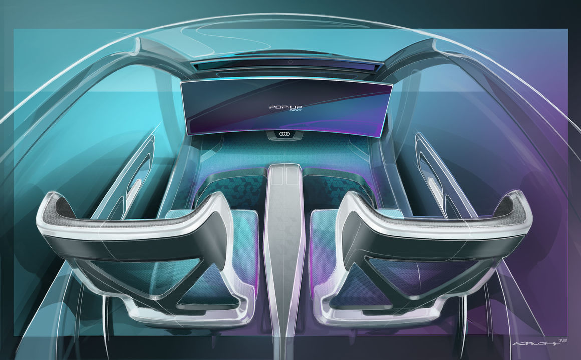 (ty) Audi, Italdesign und Airbus präsentieren auf dem Genfer Autosalon von 8. bis 18. März "Pop.Up Next", ein rein elektrisches, vollautomatisiertes Konzept für horizontale und vertikale Mobilität. Das Fortbewegungsmittel könnte in ferner Zukunft Menschen in Großstädten schnell und komfortabel auf der Straße sowie in der Luft transportieren und dabei Verkehrsprobleme lösen. Im Innenraum dominiert ein 49-Zoll-Bildschirm, die Mensch-Maschine-Interaktion erfolgt über Sprach- und Gesichts-Erkennung, Eye-Tracking sowie Touch-Funktion.