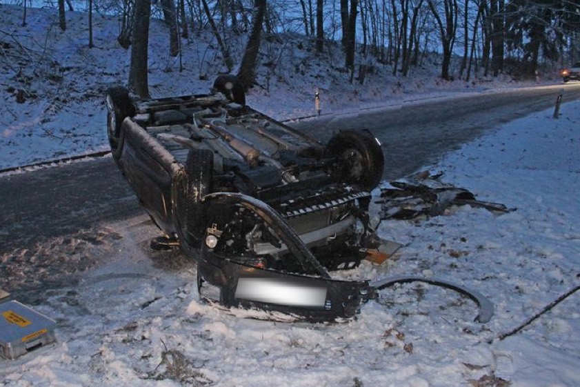 (ty) Aufgrund der winterlichen Straßenverhältnisse kam es am gestrigen Abend in der Regnitzstraße in Feilitzsch (Kreis Hof) zu einem heftigen Unfall, bei dem eine 31-Jährige viel Glück im Unglück hatte. Kurz nach 17 Uhr verlor die Frau auf der abschüssigen Strecke die Kontrolle über ihren Wagen. Er kam nach rechts von der Fahrbahn ab, prallte dort gegen einen Baum und überschlug sich. Das Auto blieb auf dem Dach liegen (Foto oben). Die 31-Jährige erlitt lediglich leichte Verletzungen, wurde per Rettungswagen in ein Krankenhaus gebracht. Sachschaden: etwa 20 000 Euro.