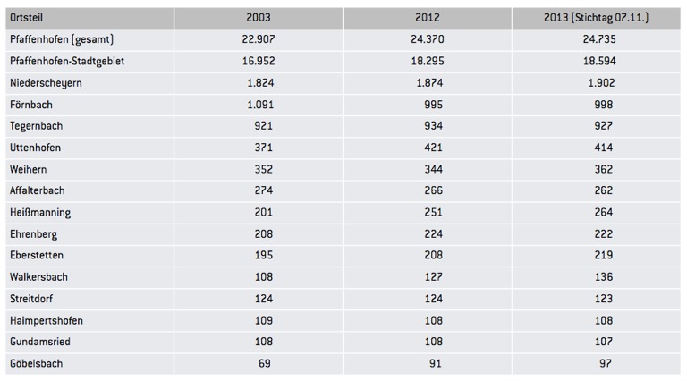 Im Vergangenen Jahr gab es 1736 Zuzüge und 1412 Wegzüge (plus 324 Leute), heuer bislang 1652 Zuzüge und 1271 Wegzüge (plus 381 Leute). Unter Berücksichtigung von Geburten und Sterbefällen ist die Bevölkerung von Pfaffenhofen im vergangenen Jahr um 309 Personen gewachsen, heuer bereits um 385.