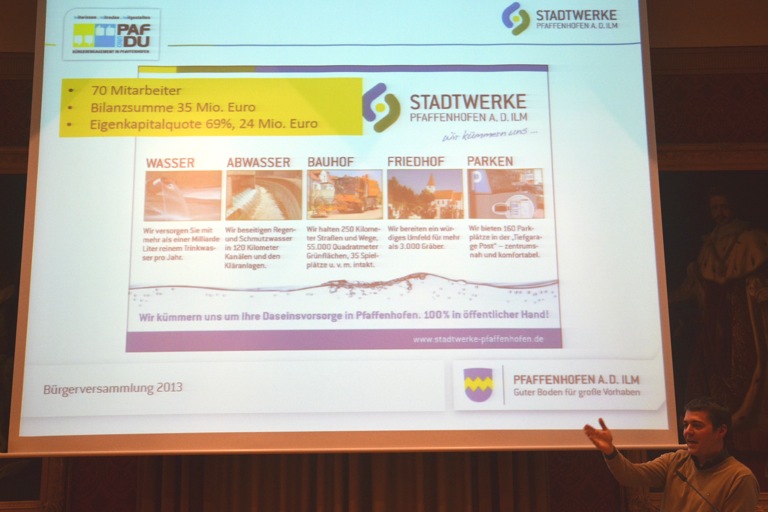 Der Pfaffenhofener an sich scheint recht zufrieden mit seiner Stadtverwaltung, den Entscheidungen des Stadtrats und der Arbeit des Bürgermeisters. Diesen Eindruck musste man zumindest heute Abend bei der Bürgerversammlung in der Kreisstadt gewinnen, der letzten in einer Reihe von vieren. Es gab weder erwähnenswerte Kritik, sonstige Schelte oder Anregungen, bei denen man sich dachte: Warum ist das nicht längst erledigt. Oh du fröhlicher – Pfaffenhofener.