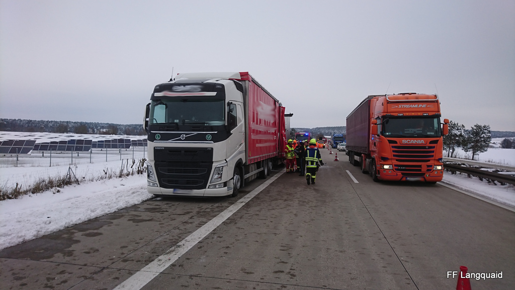 (ty) Am gestrigen Vormittag ist es gegen 10 Uhr im Bereich von Hausen auf der A93 in Fahrtrichtung München zu einem Unfall-Geschehen gekommen, in das letztlich drei Sattelzüge verwickelt waren. Zunächst hatte es nach Angaben der Polizei einen Unfall gegeben, bei dem zwei Lkw beschädigt worden sind. Diese beiden Fahrzeuge kamen dann auf der Standspur zum Stehen.