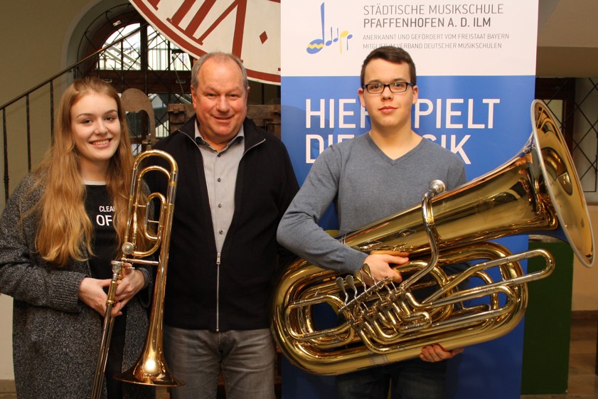 (ty) „Ihr habt großartige Leistungen gezeigt!“ Der Pfaffenhofener Musikschulleiter Auwi Geyer zeigt sich stolz auf seine beiden Schützlinge: Sandra Nothnagel (Posaune) und Mathias Brix (Tuba), beide 16 Jahre alt, haben am Wochenende beim Landeswettbewerb „Jugend musiziert“ in Regensburg teilgenommen – und Sandra hat sich für die nächste Runde qualifiziert. Sie fährt damit an Pfingsten zum Bundeswettbewerb nach Lübeck, um sich dort mit den besten Nachwuchs-Musikern aus ganz Deutschland zu messen.