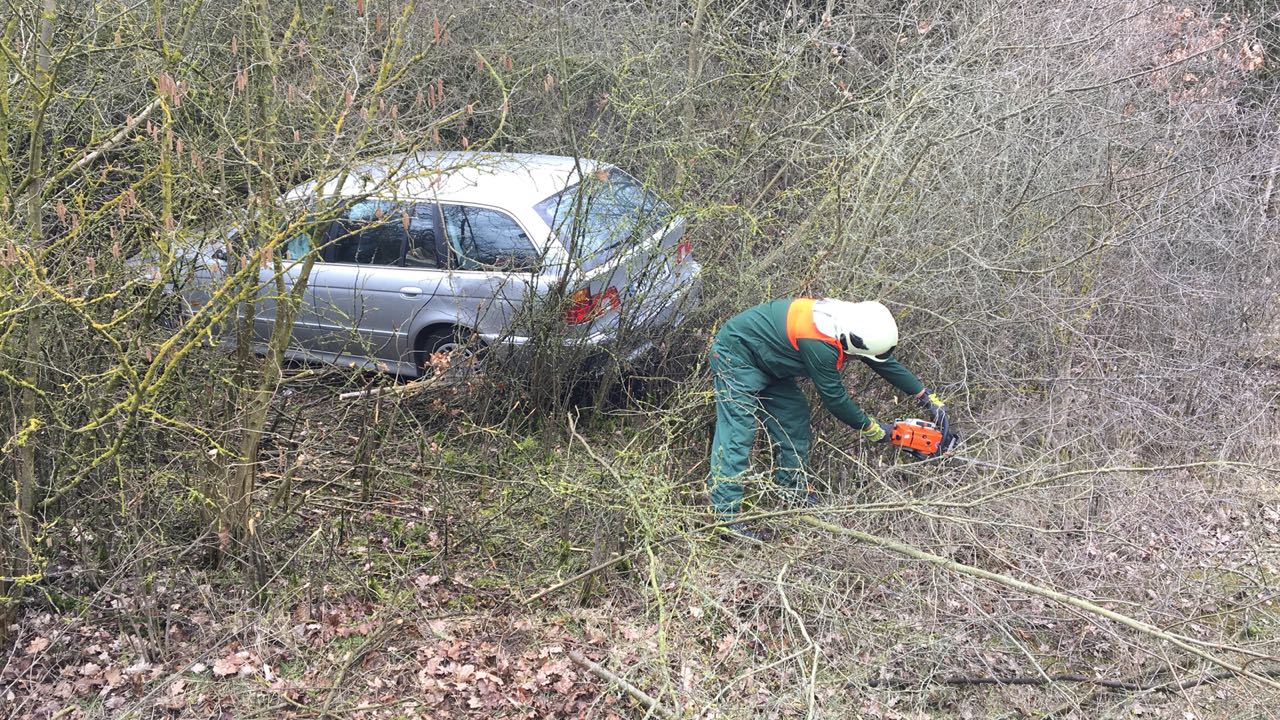 Älteres Ehepaar kam heute Nachmittag von der Strecke ab, der Wagen landete in den Bäumen. Die beiden blieben unverletzt.