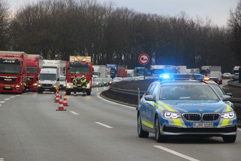 (aa) Ein langer Stau bildete sich nach einem Verkehrsunfall am heutigen Morgen auf der A3 in Richtung Passau (Foto oben). Gegen 6.30 Uhr ging bei der Einsatzzentrale die Meldung über einen Unfall mit mehreren beteiligten Fahrzeugen kurz vor der Anschlussstelle Regensburg-Universität ein. Nach ersten Erkenntnissen kam es zu dem Unfall, nachdem ein 35-Jähriger aus dem westlichen Landkreis Regensburg kurz vor der Anschlussstelle von der mittleren Fahrspur auf den Ausfahrtstreifen wechselte und dabei mit einem Pkw zusammenstieß, der von einer 18-Jährigen gefahren wurde.