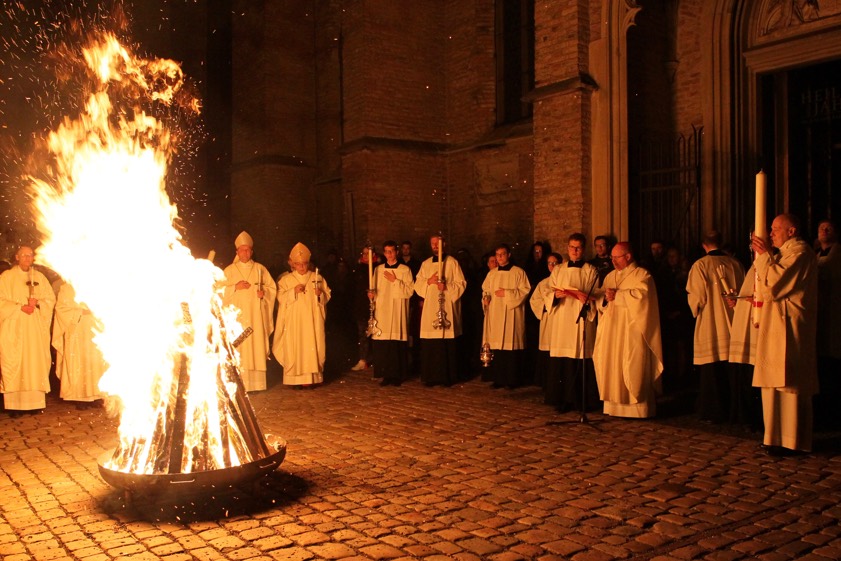 Bereits am gestrigen Abend während der Feier der Osternacht hatte sich auch Weihbischof Florian Wörner der Frage der Weitergabe des Glaubens gewidmet. "Gott ist Licht, und er ruft ins Licht", sagte er. Die Osterkerze verkünde es uns: Wer sich an Jesus Christus halte, tappe nicht länger im Dunkeln, sondern werde selber das Licht des Lebens haben und es für andere ausstrahlen. Wer mit Jesus verbunden sei, tue sich leichter mit dem, was die Osternacht uns Großartiges verkünde. "Er kann gläubig bekennen: Der Herr ist wahrhaft auferstanden."