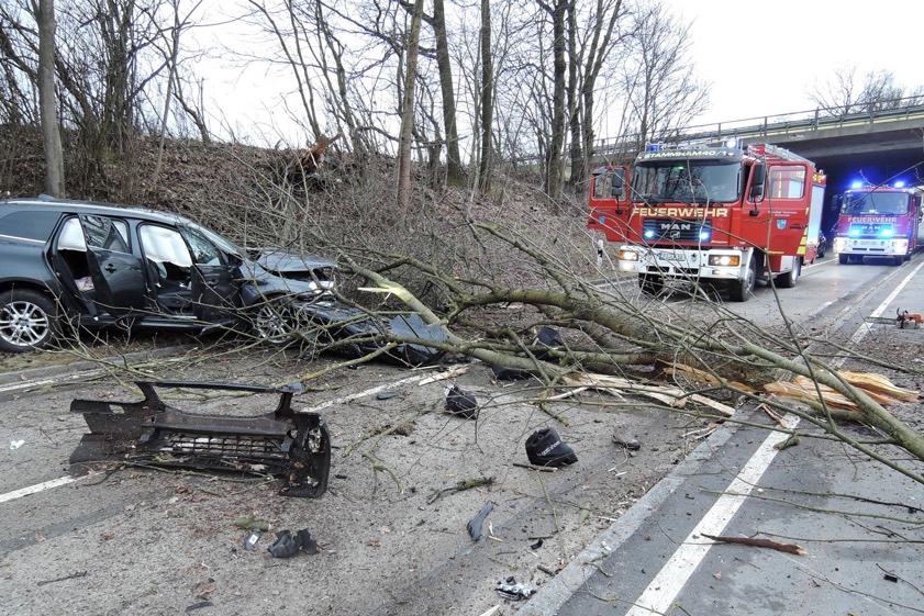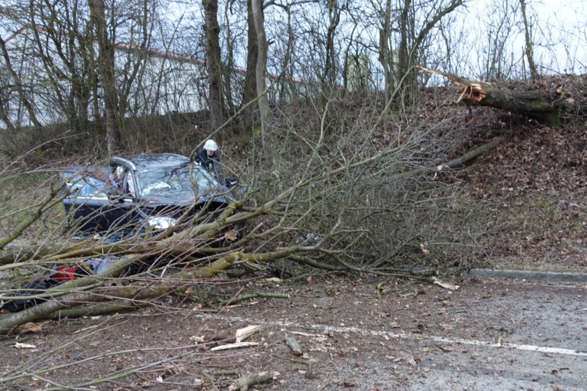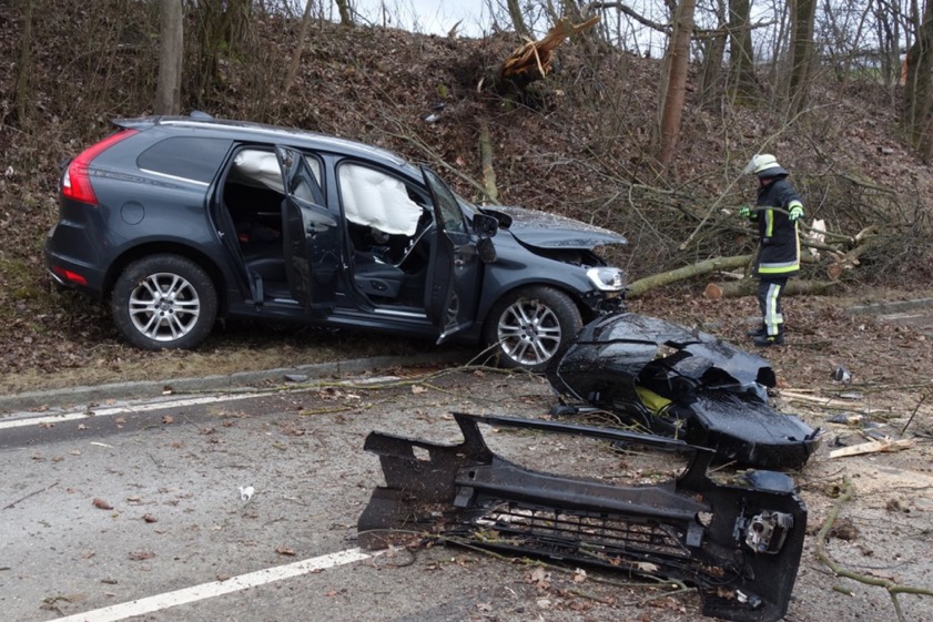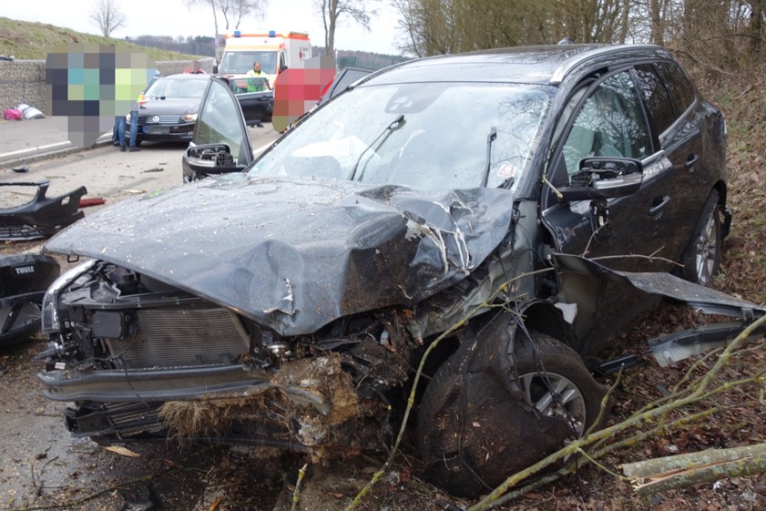 Der Vater schlief offenbar am Steuer ein, der Pkw krachte gegen einen Baum und landet auf der Kreisstraße.