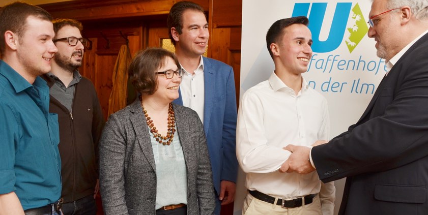 Marco Nobre dos Reis nimmt die Glückwünsche des Bundestags-Abgeordneten Erich Irlstorfer entgegen.