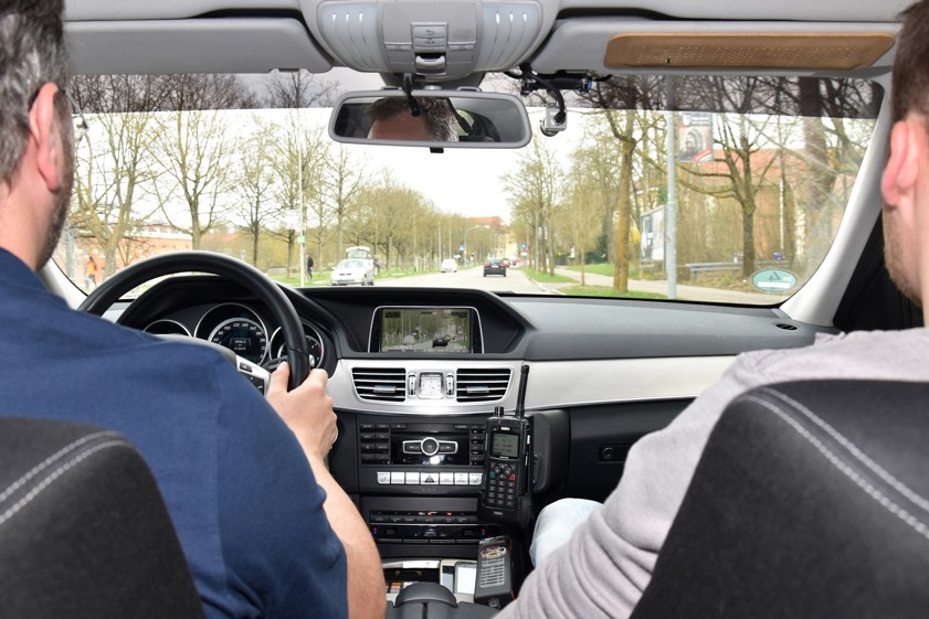 In diesem zivilen Fahrzeug war die Video-Streife der Verkehrspolizei in der besagten Nacht unterwegs. Oben, neben dem Rückspiegel, sieht man die Kamera.