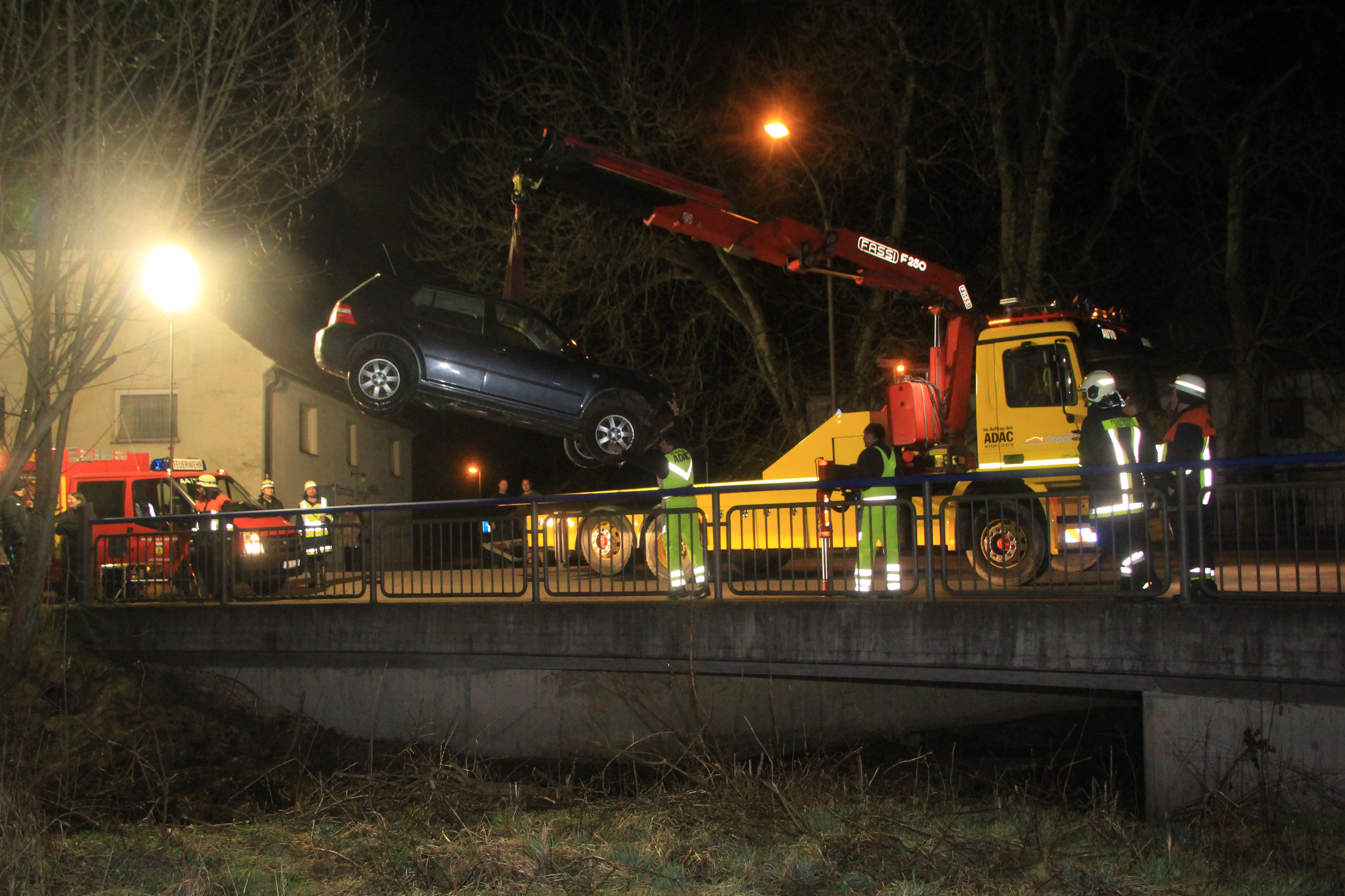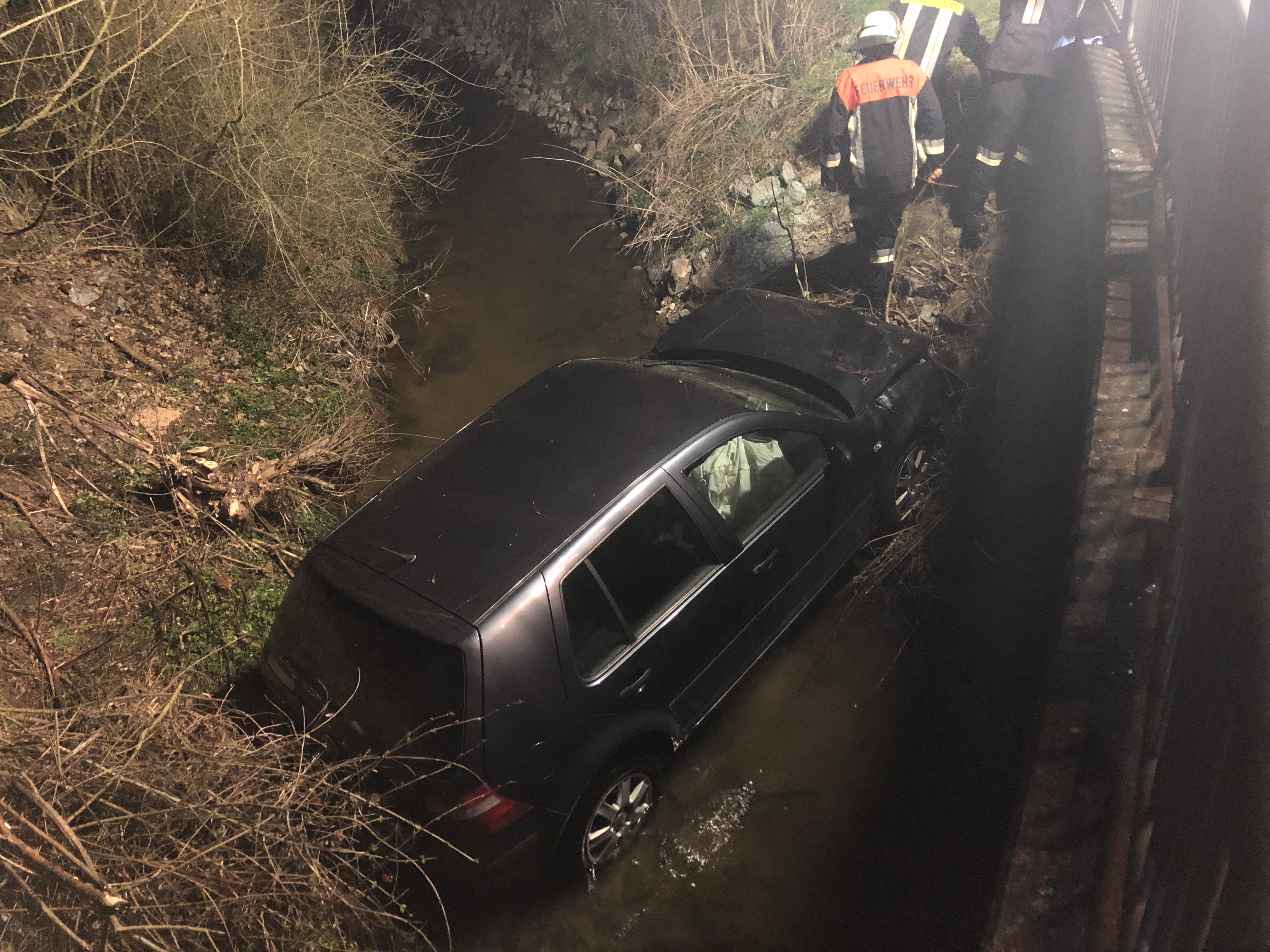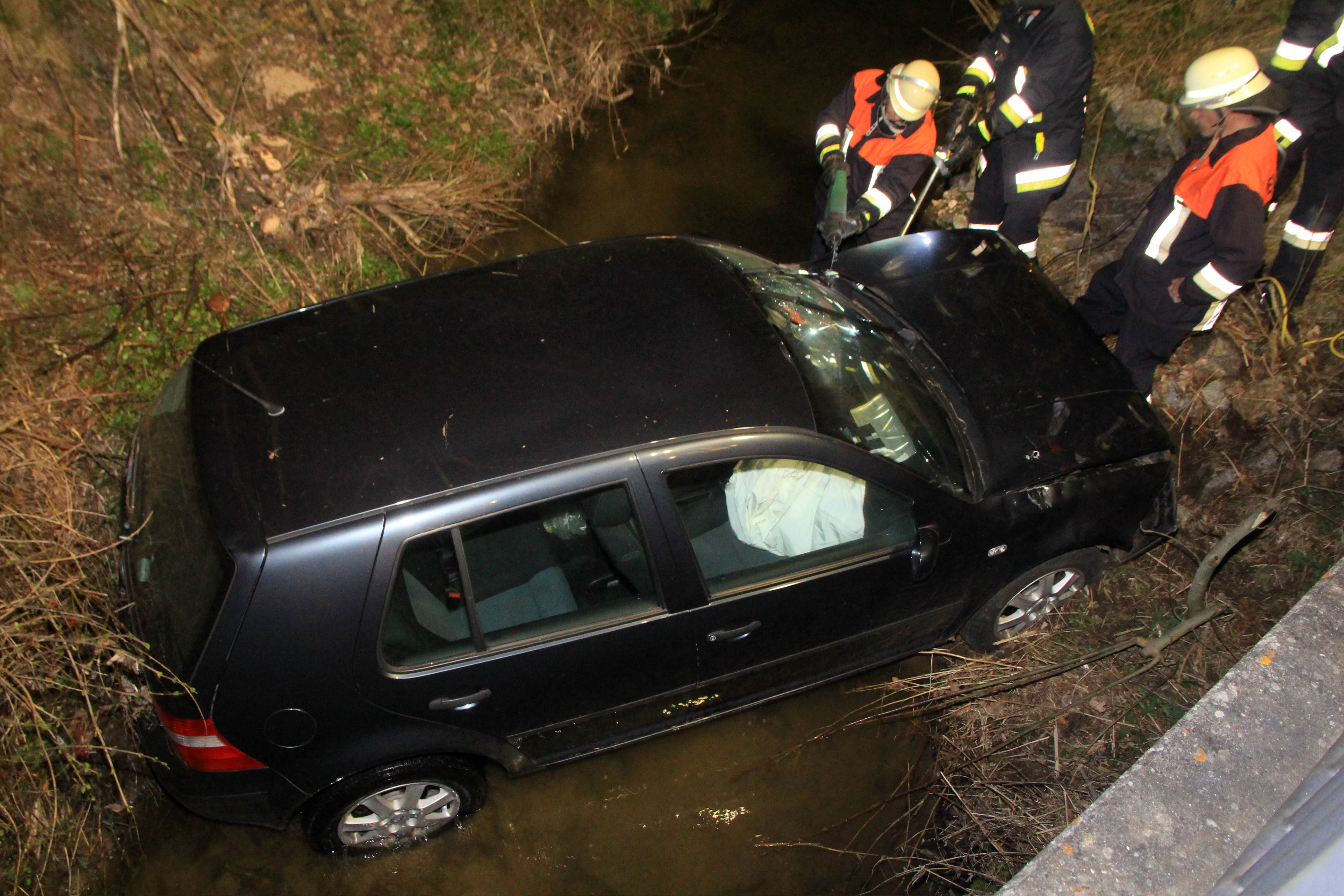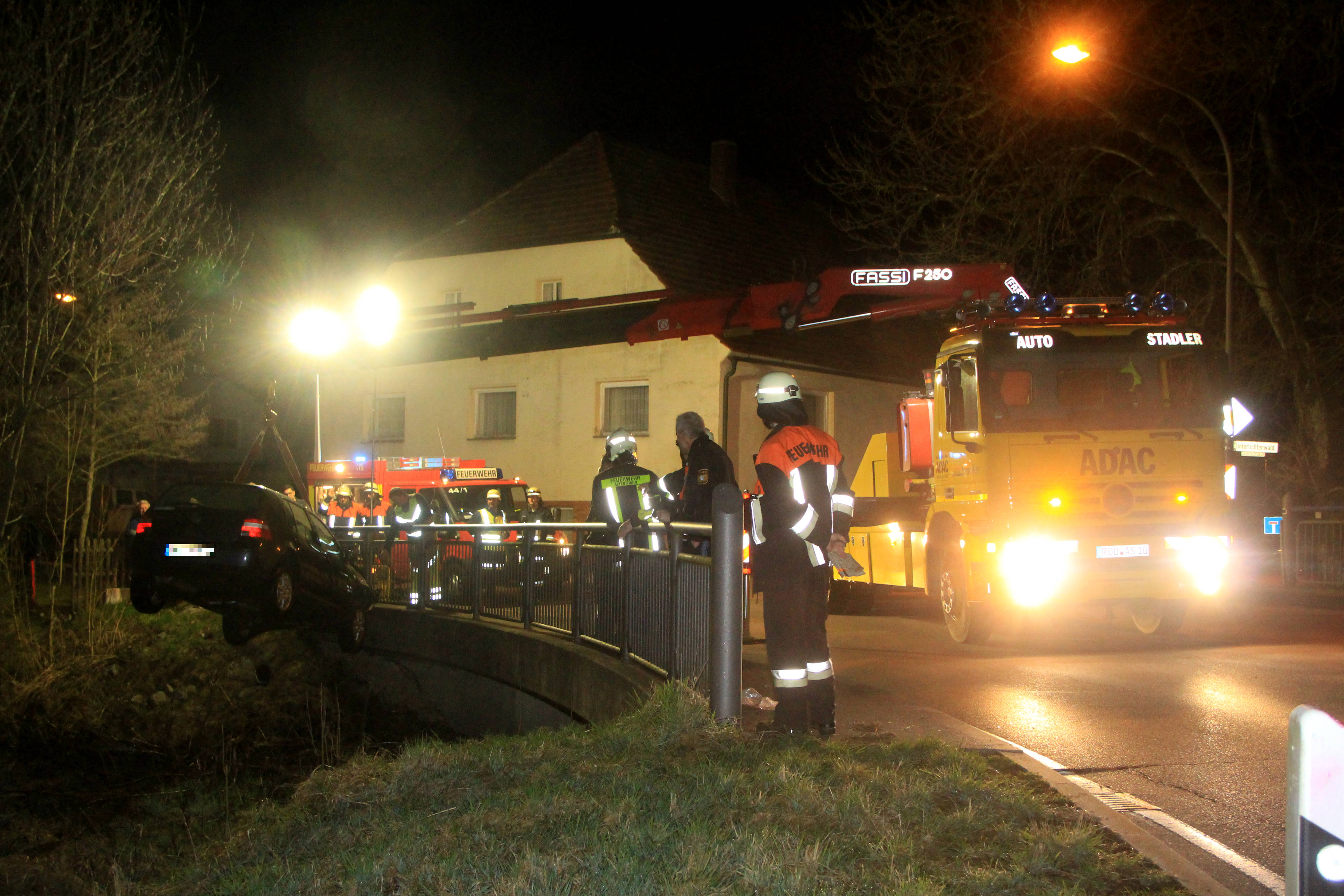 (aa) Sowas hatte selbst der Kreisbrandmeister noch nicht erlebt. Am gestrigen Abend gegen 20.45 Uhr wurden die Feuerwehren aus Altenthann, Lichtenwald, Sulzbach/Donau und Donaustauf nach Unterlichtenwald (Kreis Regensburg) alarmiert – wegen eines Pkw im Bach und einer eingeklemmten Person. Vor Ort bestätigte sich die Lage, ein VW befand sich im rund drei Meter tiefen Bachbett neben der Staatsstraße. Glücklicherweise hatte ein Ersthelfer das Licht aus der Tiefe neben der Straße gesehen und so das Unfall-Auto bemerkt. Der couragierte Mann zögerte nicht, sprang ins kühle Nass und befreite die 60-jährige Autofahrerin aus ihrer misslichen Lage.