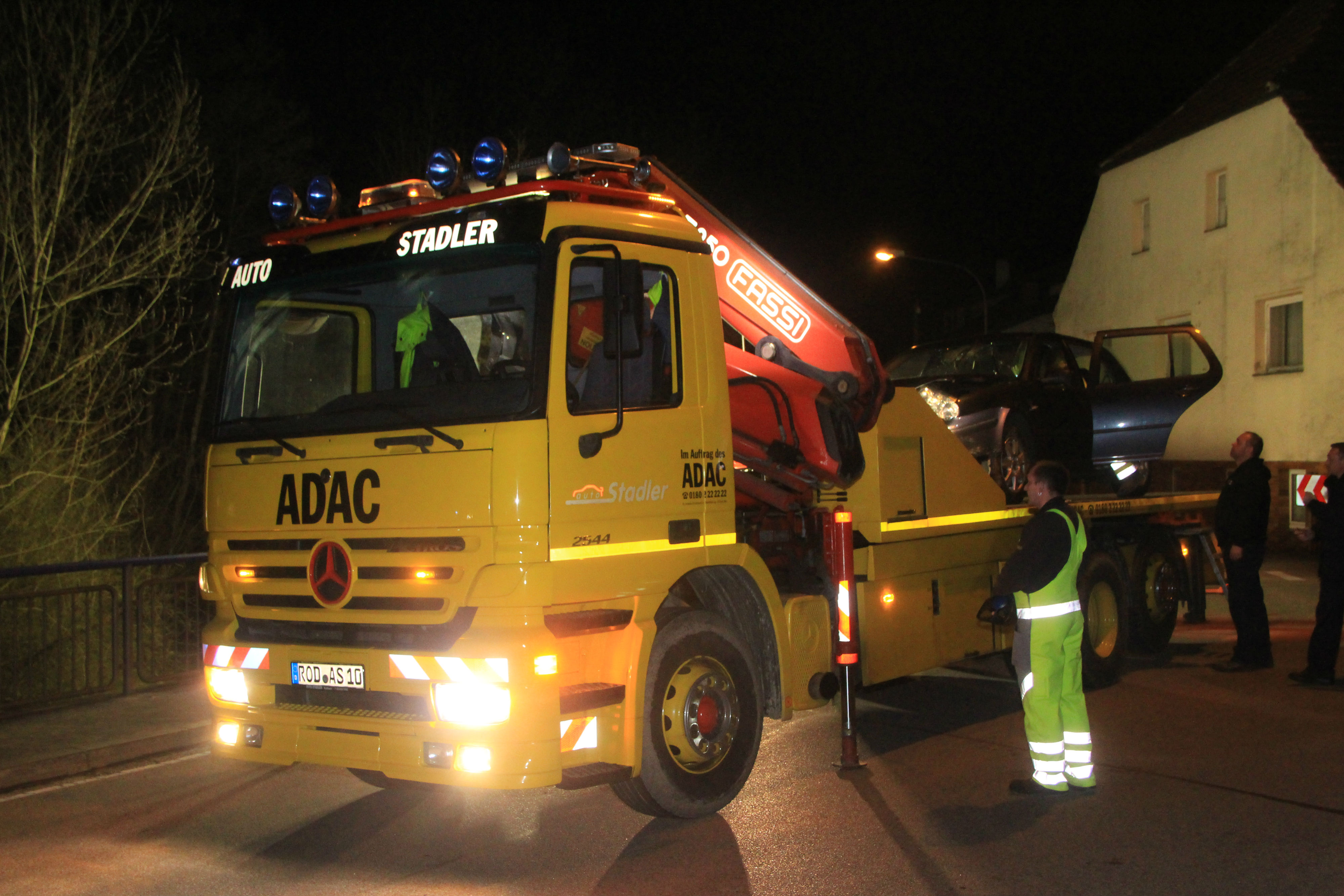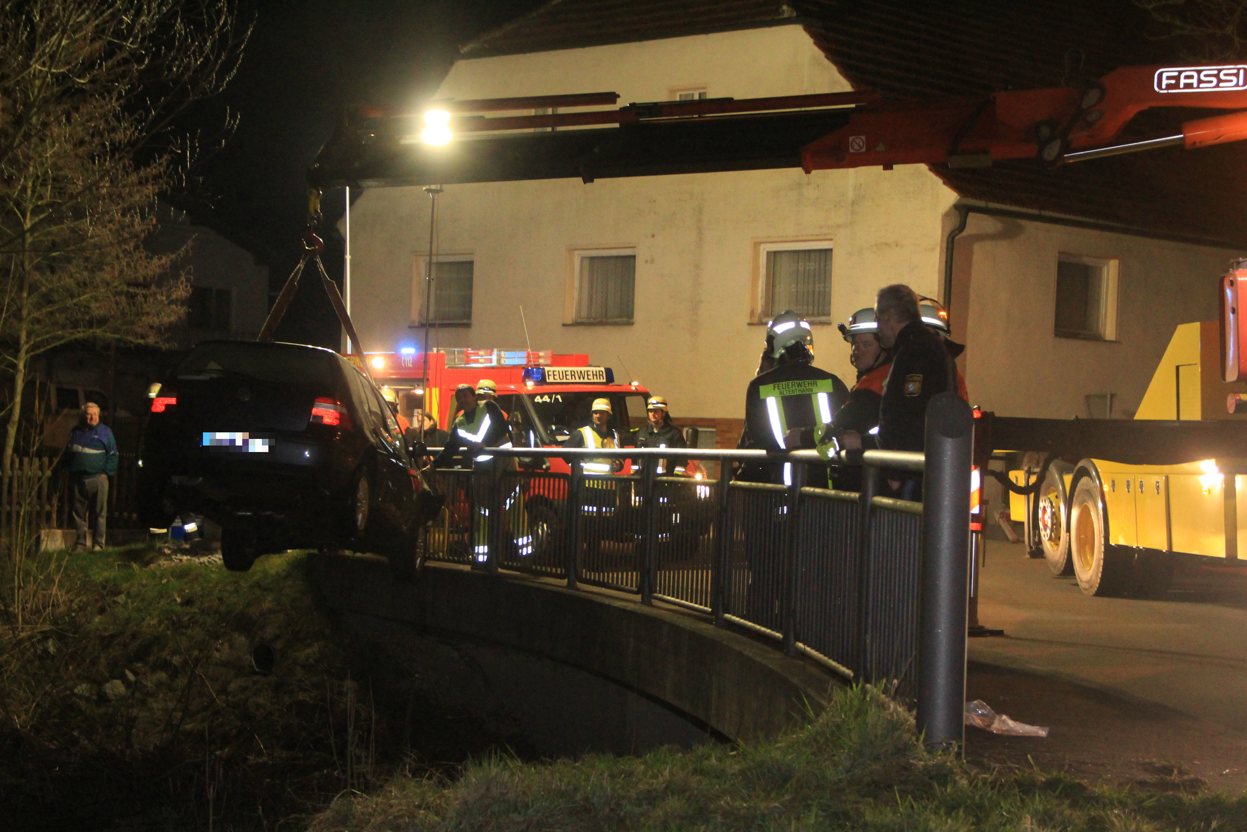 Mit leichten Verletzungen wurde die Verunglückte vom Rettungsdienst in ein Regensburger Krankenhaus gebracht. Nachdem die Einsatzkräfte die Batterie des Autos abgeklemmt hatten, musste ein Abschlepp-Unternehmen mit einem starken Kranwagen anrücken. Die anspruchsvollen Bergungs-Maßnahmen zogen sich bis zirka 22.30 Uhr. Mit Hilfe des Kranwagens wurde das Auto wieder auf die Brücke gehievt sowie letztlich mit einem Abschleppwagen weggeschafft. Bis zum Abschluss der Bergung war die Staatsstraße 2145 in diesem Bereich komplett gesperrt.