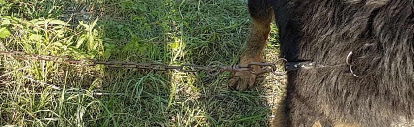 Mit einer Kette war der Rüde an einem Baum festgemacht.