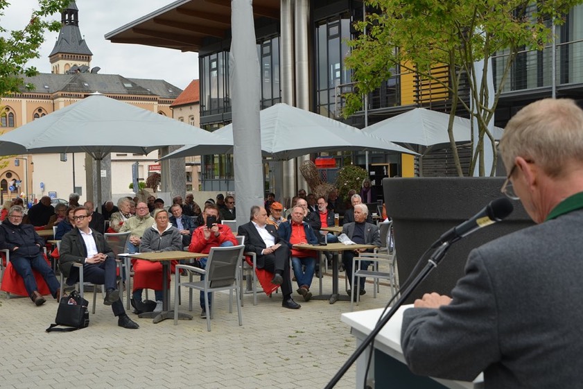 Unter dem Motto „Solidarität, Vielfalt und Gerechtigkeit" stand die Mai-Kundgebung des Deutschen Gewerkschaftsbunds (DGB) am heutigen Vormittag auf dem Pfaffenhofener Sparkassenplatz. Nicht gespart wurde dabei an Kritik in Sachen Wohnungsbau vom Dritten Bürgermeister Roland Dörfler (Grüne), der in Doppelfunktion – als Vorsitzender des DGB-Kreisverbands und als Stellvertreter von Rathauschef Thomas Herker (SPD) – sprach, ehe Karl Musiol von der IG-Metall Ingolstadt neben einem Plädoyer für eine offene Gesellschaft auch auf Gesundheitspolitik und Rente sowie bezahlbaren Wohnraum einging.