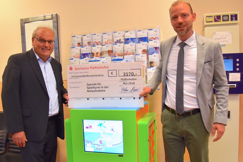 (ty) Die kleinen Patienten erwartet beim ersten Kontakt mit der Pfaffenhofener Ilmtalklinik jetzt ein netter Zeitvertreib – der neue, bunte Spielturm in der Notaufnahme. Die Kosten in Höhe von 3570 Euro wurden von der Sparkasse Pfaffenhofen übernommen. Die Beschäftigung am Spielturm soll für die Mädchen und Buben die Wartezeit überbrücken, vor allem aber die Kinder von ihren großen oder kleineren Wehwehchen ablenken sowie mögliche Ängste abbauen. Das Spielmodul verfügt über einen Playtouch-Monitor mit 13 unterschiedlichen Spielen. Das Alters-Level ist bei Spielbeginn von einem bis elf Jahren einstellbar.