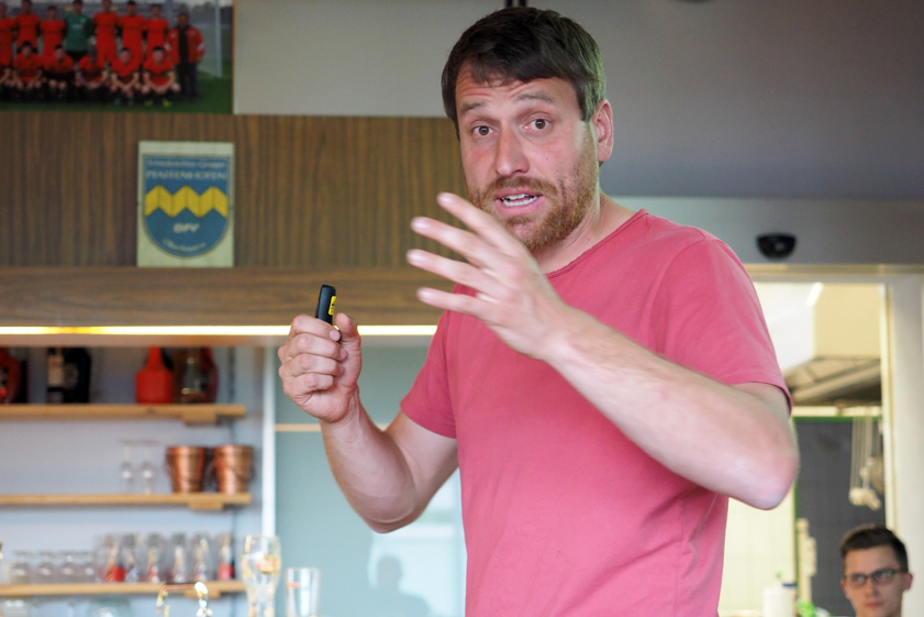 Wer nun einen geschniegelten Funktionär in dunklem Anzug mit Krawatte und vermeintlich bedeutsamen Ehrennadeln am Revers erwartet hatte, der sein Auditorium gerne auch noch warten lässt, wurde bitterlich enttäuscht: Der Riepl Flo kam mit Jeans und T-Shirt. Das T-Shirt mehr als lässig über der Jeans, für einen Mittdreißiger fast schon zu lässig. Riepl war überpünktlich und hat geredet, wie ihm der Schnabel gewachsen war. Kein Blatt vor dem Mund. Sprache: Bairisch. Nein, ein Grundsatzreferat über die Amtsbefugnisse eines Kreisvorsitzenden wollte der 35-Jährige nicht halten. Er wollte aus seinem Regionalliga-Alltag erzählen und begeistern. Damit kam er bei den Pfaffenhofener Schiris genau an die Richtigen, denn in der bestens gefüllten Vereinsgaststätte des FSV Pfaffenhofen waren auch die meisten der 38 Schiedsrichter-Neulinge vertreten, die erst kürzlich ihre Prüfung abgelegt hatten und nun auf ihre ersten Einsätze brennen.