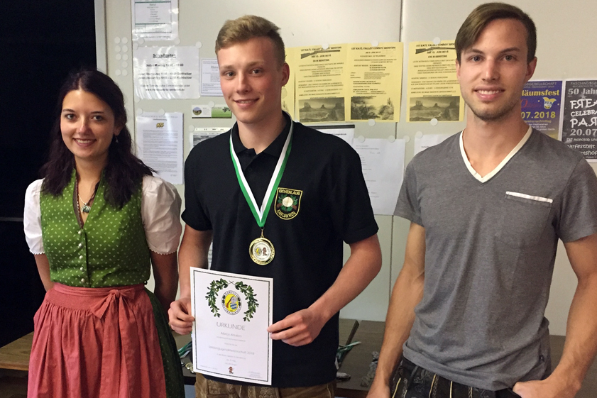 Gut gezielt: Marius Klöckers (Mitte) erreichte mit 383 Ringen das beste Ergebnis. Sektionsjugendleiterin Stefanie Reisner und ihr Stellvertreter Thomas Felsl gratulierten.