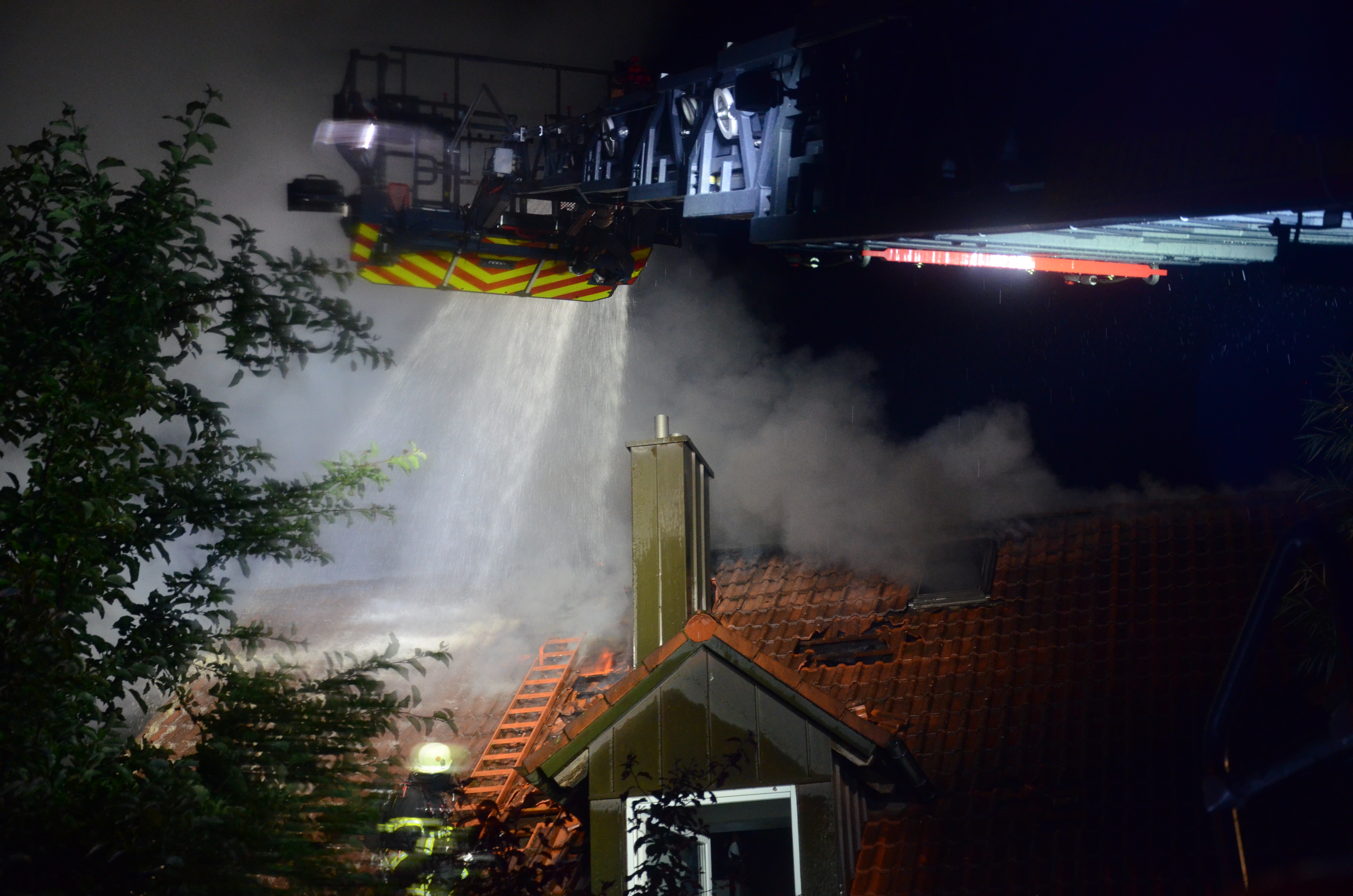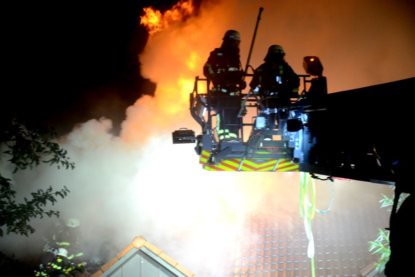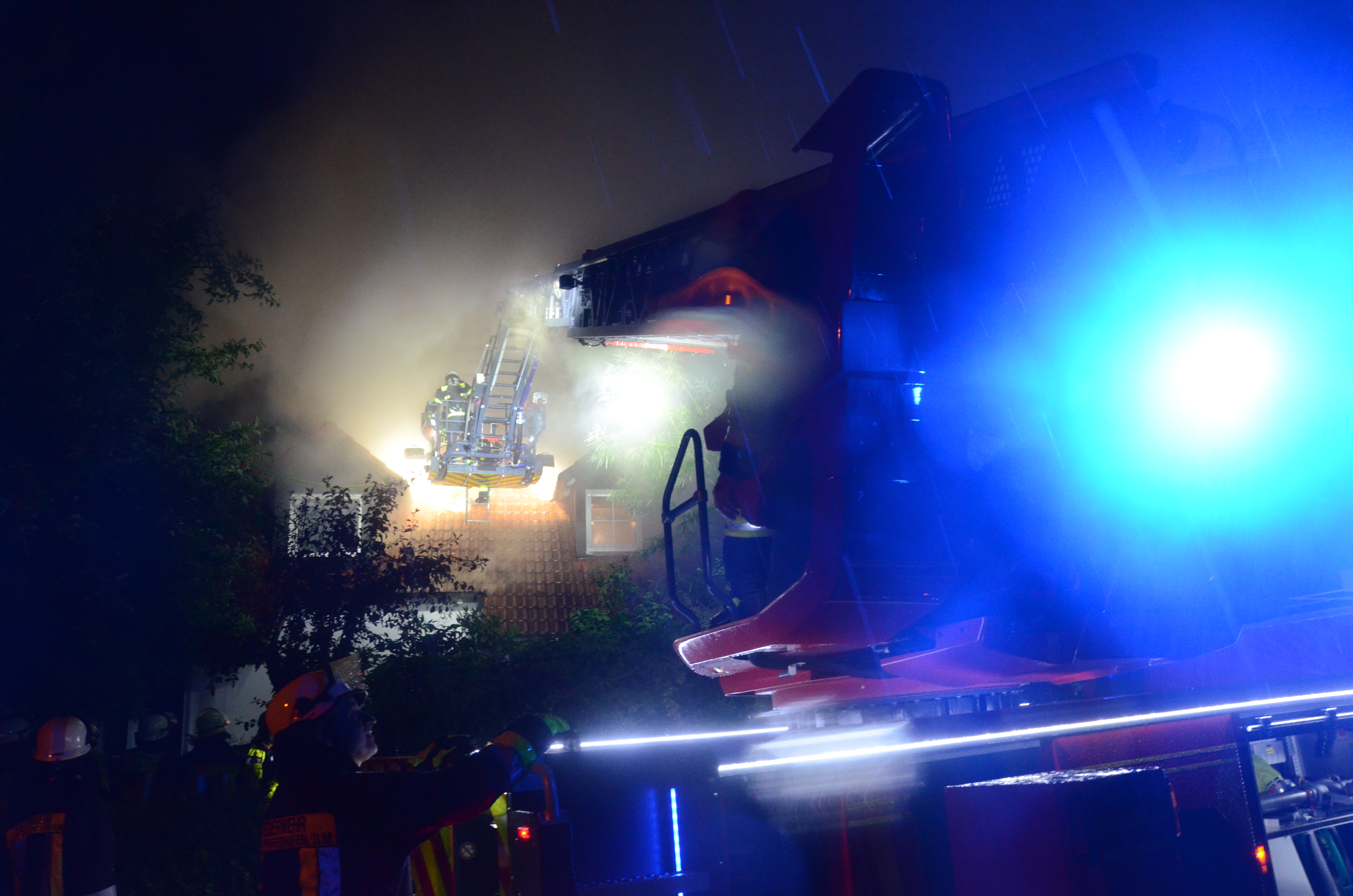 (zel) Beim Brand eines Wohnhauses im Pfaffenhofener Ortsteil Niederscheyern ist am Donnerstagabend immenser Schaden entstanden. Ursache war nach ersten Erkenntnissen offenbar ein Blitzschlag. Drei Personen, darunter ein Feuerwehrmann, erlitten leichte Verletzungen. Ein Großaufgebot von Einsatzkräften rückte im Ahornring an und kämpfte – zeitweise im strömenden Regen – gegen die Flammen. Die Ermittlungen zur detaillierten Klärung der Brandursache übernimmt die Ingolstädter Kriminalpolizei.