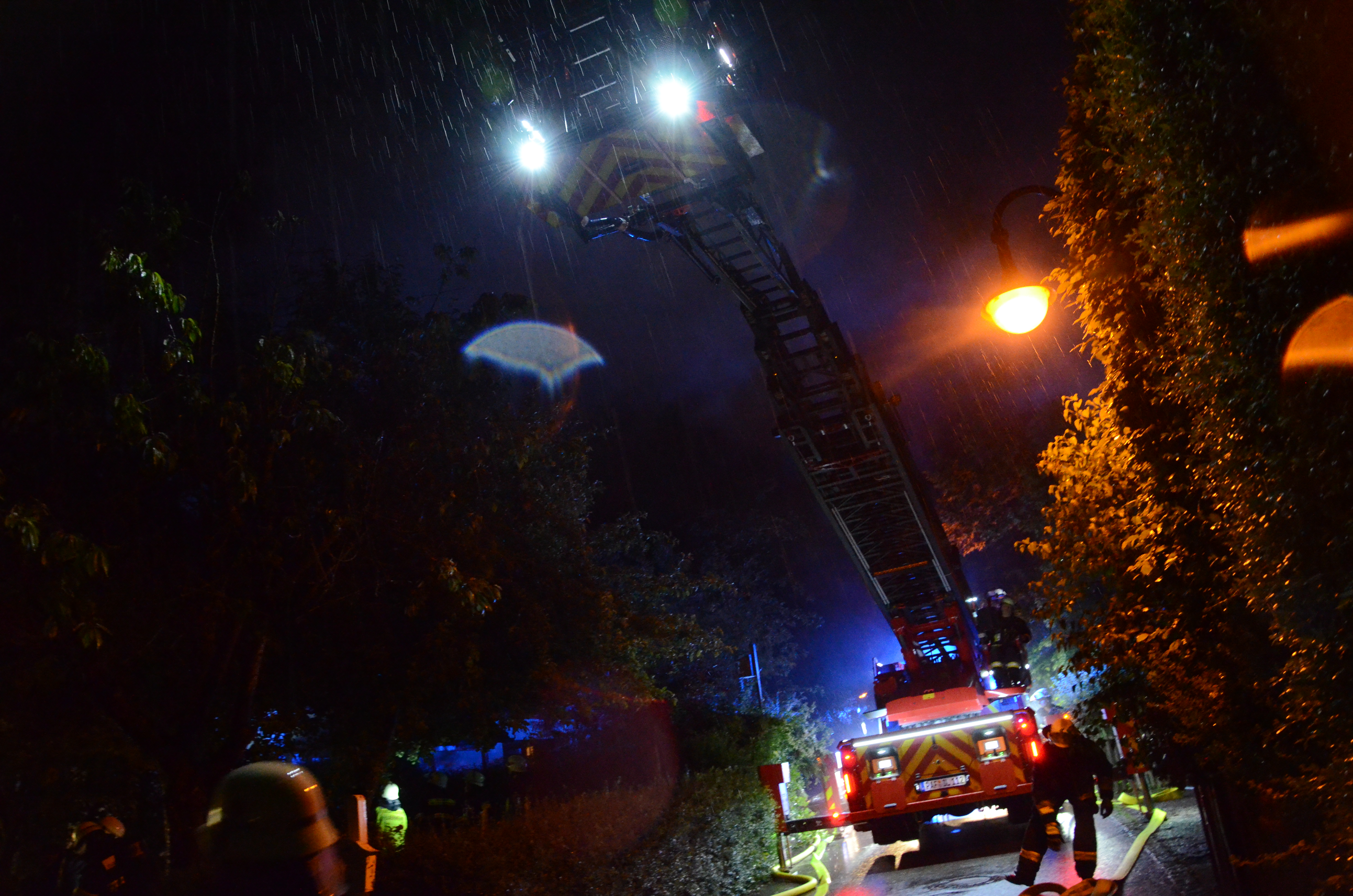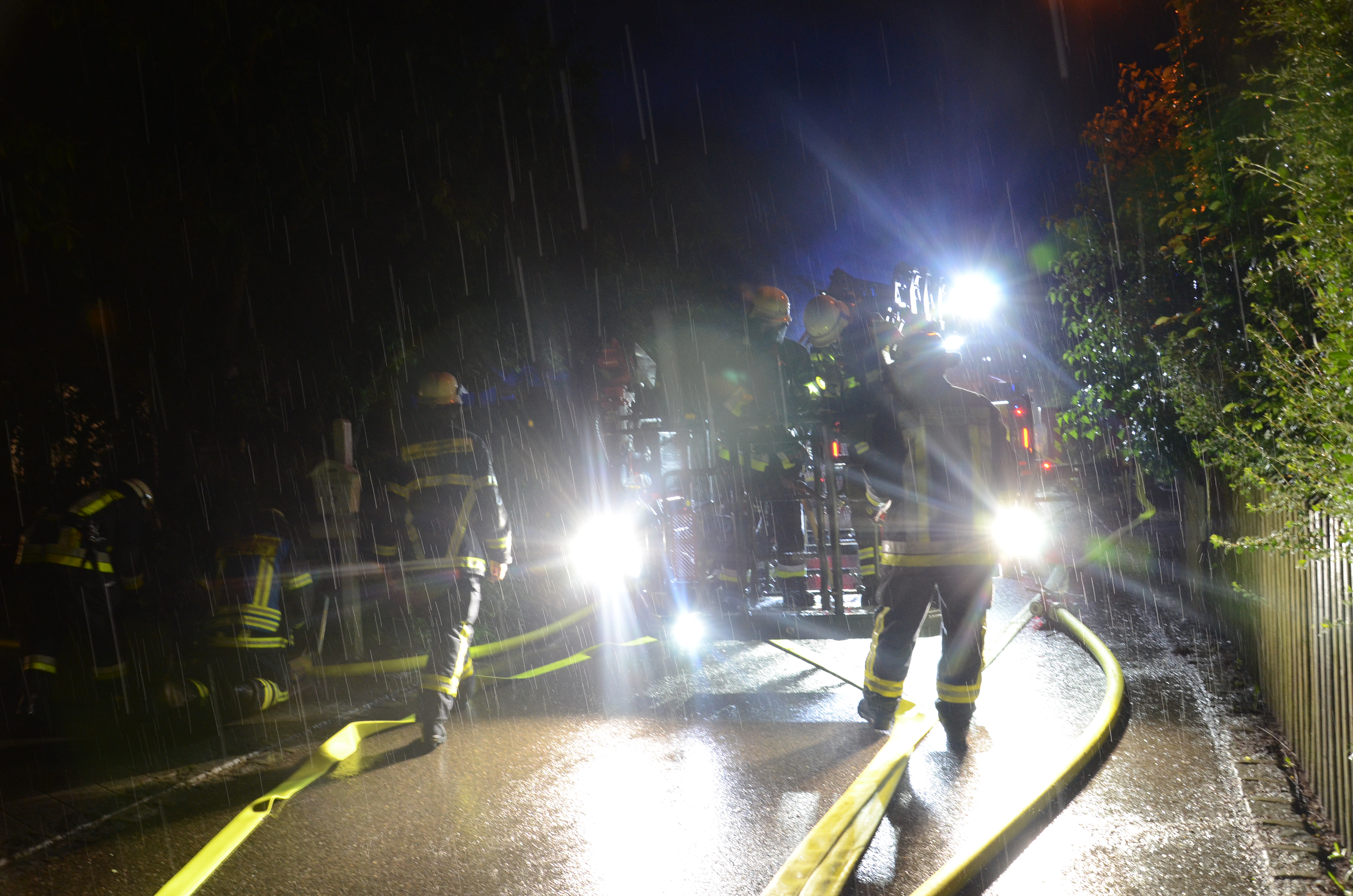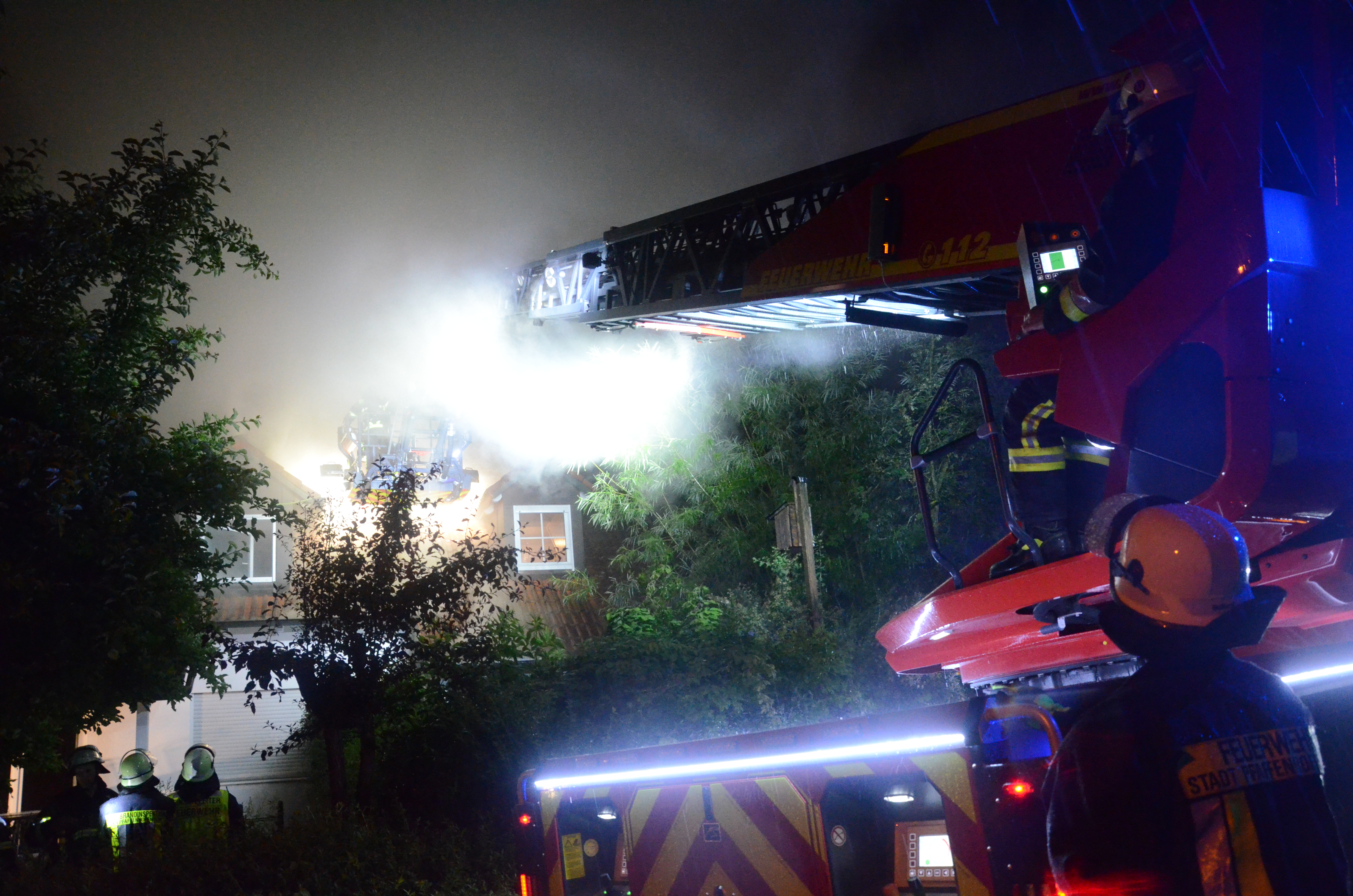 (zel) Beim Brand eines Wohnhauses im Pfaffenhofener Ortsteil Niederscheyern ist am Donnerstagabend immenser Schaden entstanden. Ursache war nach ersten Erkenntnissen offenbar ein Blitzschlag. Drei Personen, darunter ein Feuerwehrmann, erlitten leichte Verletzungen. Ein Großaufgebot von Einsatzkräften rückte im Ahornring an und kämpfte – zeitweise im strömenden Regen – gegen die Flammen. Die Ermittlungen zur detaillierten Klärung der Brandursache übernimmt die Ingolstädter Kriminalpolizei.