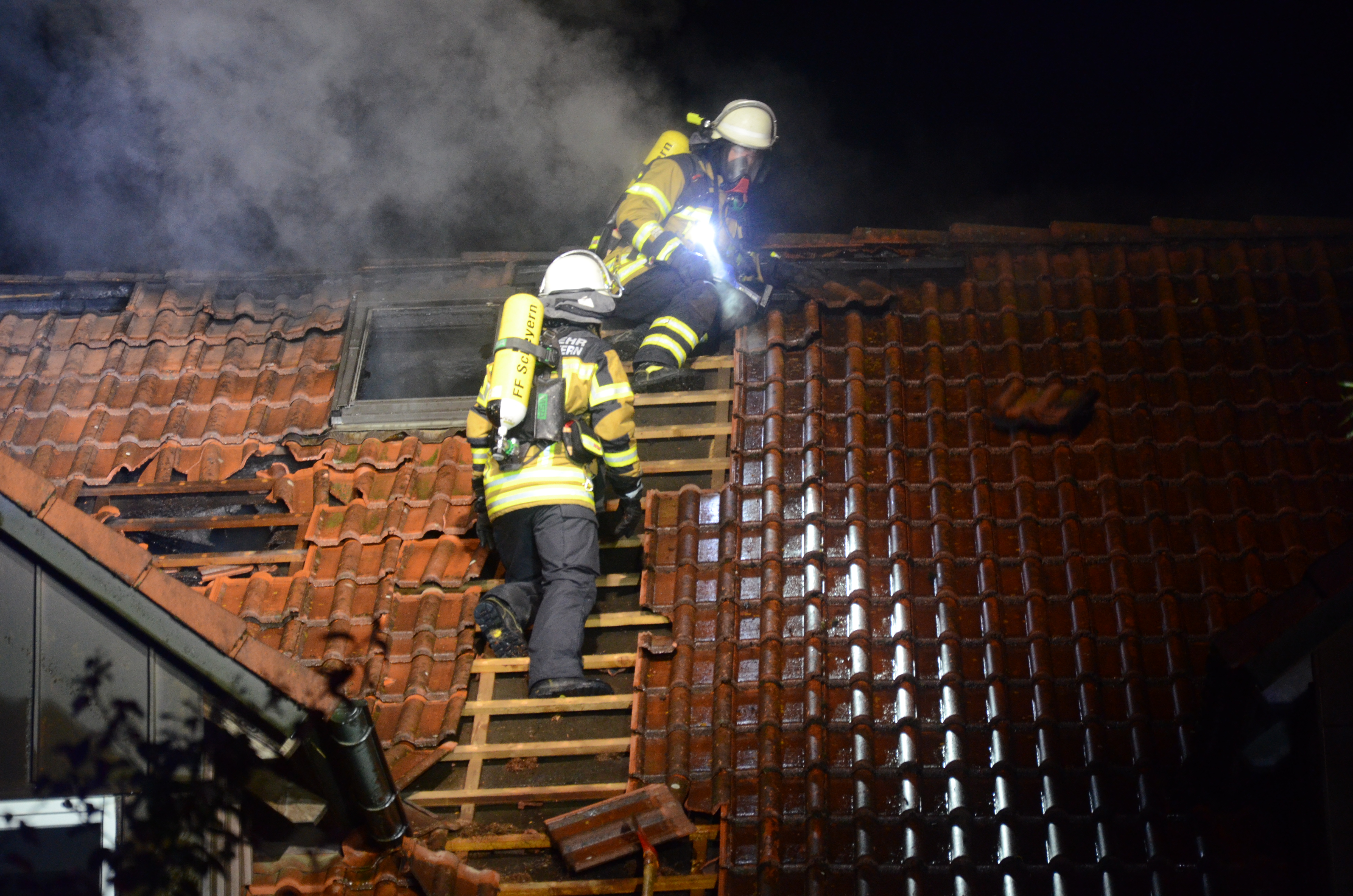 Die Einsatzkräfte sind bis weit nach Mitternacht – unter anderem mit Nachlösch-Arbeiten und dem Aufspüren von möglichen Glutnestern – beschäftigt. Wie Feuerwehr-Einsatzleiter Schweigard bestätigte, konnte ein weiteres Übergreifen der Flammen verhindert werden. Das Technische Hilfswerk aus Pfaffenhofen war zunächst mit acht Mann im Einsatz, zum Abdichten des Dachs dürften allerdings weitere THW-Helfer dazukommen.