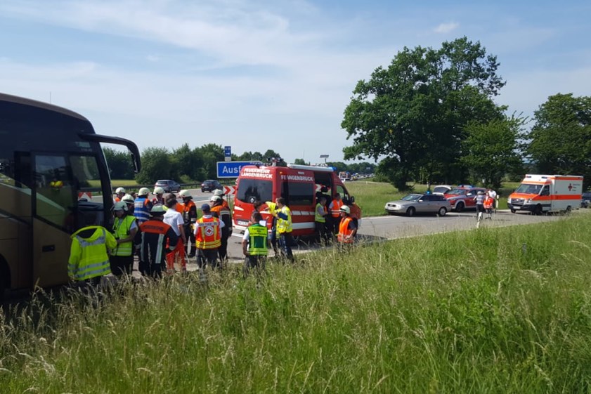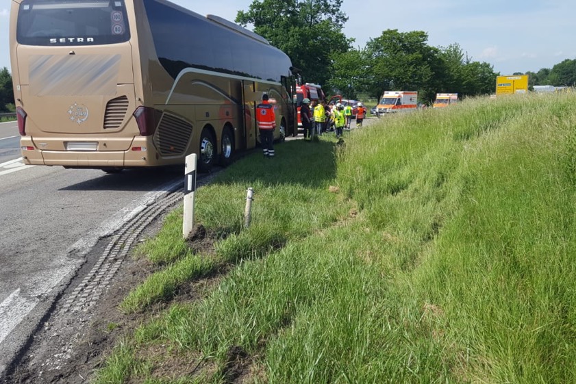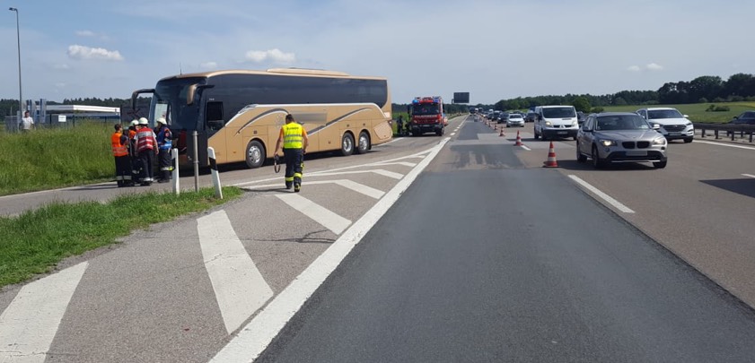 Unfall mit Reisebus auf der A9 bei Langenbruck: Mehrere Verletzte