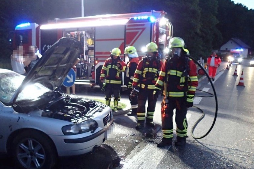 (ty) Glück im Unglück hatte ein 59-jähriger Volvo-Fahrer am gestrigen Abend (Foto oben). Wie die Kelheimer Polizei berichtet, war er vom Tunnel Bad Abbach (Kreis Kelheim) kommend auf die B16 aufgefahren. Dabei bemerkte er, dass Rauch aus dem Motorraum seines Autos aufstieg. Nachdem er sofort anhielt, konnte ein hinzukommender Ersthelfer den Brand bereits im Anfangsstadium mittels eines Handlöschers löschen. Die Feuerwehr rückte an, hatte laut Angaben der Polizei aber nicht mehr viel zu tun. Am Wagen entstand ein Sachschaden in Höhe von etwa 4000 Euro.
