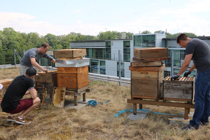 (ty) Das Dach der Technischen Hochschule Ingolstadt (THI) ist nun Heimat von vier Bienenvölkern. Zwei THI-Studenten des Studiengangs "International Management", Philipp Bruder – Profi-Imker in siebter Generation – und Kevin Treu, hatten die Idee, die Bienenvölker in die Stadt zu bringen. Die beiden wollen herausfinden, ob sich der Verdacht von Experten, Bienen würden im urbanen Raum mehr Honig eintragen als auf dem Land, auch für Ingolstadt bestätigt. Neben Gewichtsmessungen wollen sie dazu den Honig auf die Art der Pollen hin untersuchen lassen. So können sie feststellen, ob die Blütenvielfalt im städtischen Raum durch Parks, Gärten und Balkonkästen höher ist als auf dem Land. Dort soll diese Vielfalt wegen Monokulturen auf großen Flächen oftmals fehlen.