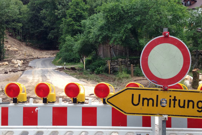 Die Straße von Essing in Richtung Keilsdorf (Kreis Kelheim) ist beim so genannten Felsenhäusl für den Verkehr gesperrt. Nach ersten Informationen sind auch hier gravierende Unwetter-Schäden zu beklagen.