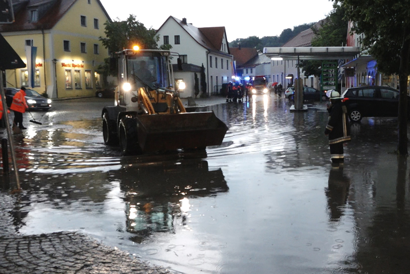 Durch einen extremen Wolkenbruch kam es im Ortsbereich Laaber im Landkreis Regensburg zu teils extremen Wassermassen. Diese überfluteten unter anderem mehrere Straßen sowie den Ortskern bis zu einem halben Meter hoch. Mehrere Feuerwehren aus dem Umkreis unterstützten die Freiwilligen Kräfte der Feuerwehr Laaber. Gemeinsam wurden Straßen von Schlamm und Geröll gereinigt, Gullys wieder freigeräumt und umgestürzte Bäume beseitigt. Während des Unwetters mussten die Feuerwehrkräfte die Ortsdurchfahrt Laaber komplett sperren. Auch in manche Geschäfte schwappte das Wasser noch leicht über. Ein Geschäftsführer schilderte, wie Autofahrer rücksichtslos mit hoher Geschwindigkeit durch die überfluteten Straßen gefahren sind und so durch die entstandenen Wellen noch mehr Schaden im Geschäft erzeugt hatten. Ein anderer Anwohner erklärte, wie es minutenlang aus Eimern geschüttet habe - "ich dachte, der Weltuntergang käme".