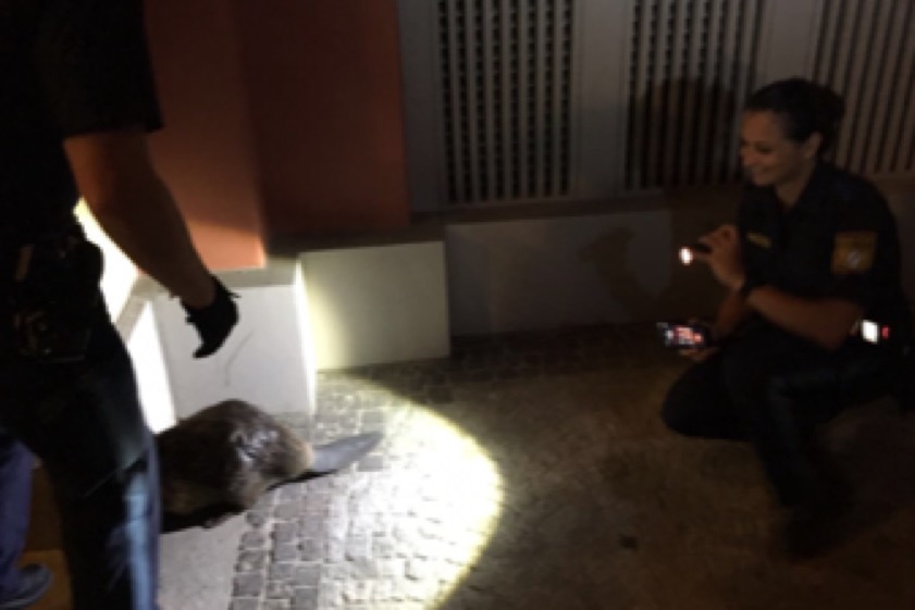 Nächtlicher Nager-Ausflug geriet zum Fall für die Münchner Polizei. Dem Tier drohten Verletzungen durch den Straßenverkehr.
