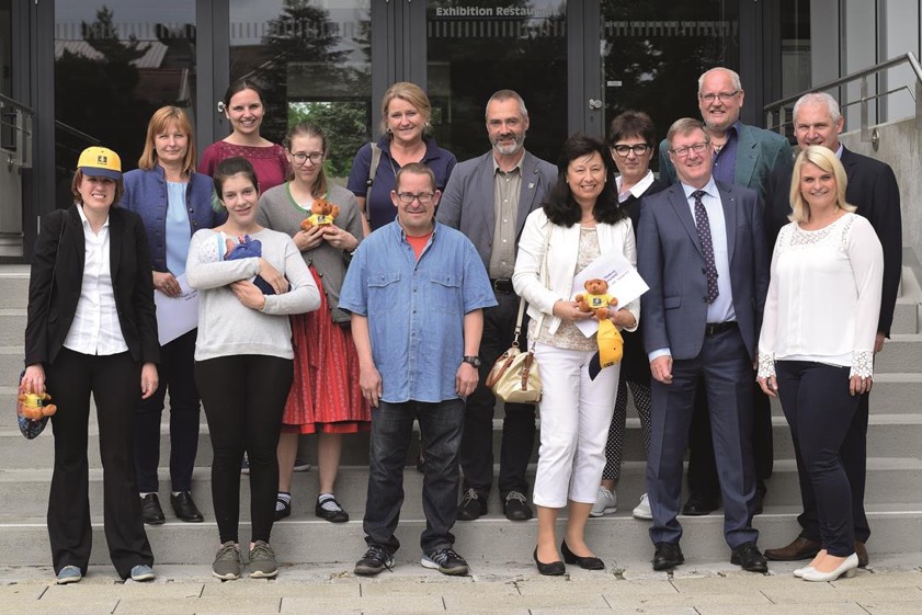 Nach einer Zugabe und stehenden Ovationen endete der Premieren-Abend mit einem fast nicht abreißenden Applaus – der Lohn für über 10 500 Stunden Vorbereitungs- und Probenzeit. Nicht der einzige, denn als Anerkennung stockte die Bauer-AG den Spendenbetrag der Zuschauer auf und machte somit eine Summe von insgesamt 20 000 Euro für den guten Zweck möglich. Hartmut Beutler, Finanzvorstand der Bauer-AG, Projektleiterin Fröhlich sowie Mitorganisator und Sänger Walter Fröhlich freuten sich, nun fünf Vereinen beziehungsweise Einrichtungen das Geld übergeben zu können (Foto oben).