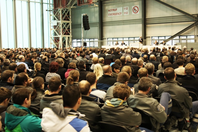 2500 Mitarbeiter waren heute zur Betriebsversammlung bei Cassidian in Manching gekommen. Sie sorgen sich um ihre Arbeitsplätze.