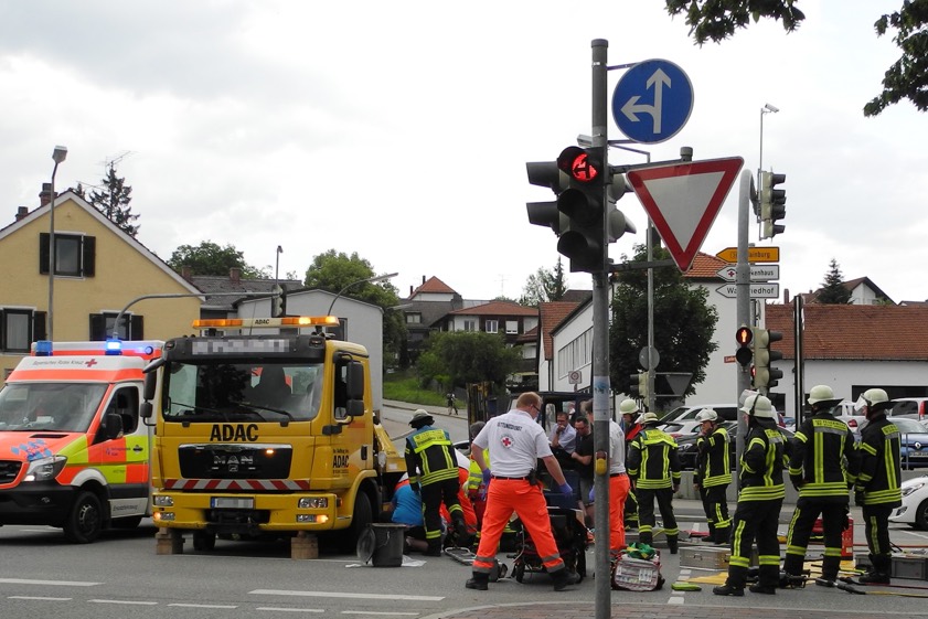 Schwerer Unfall am gestrigen Nachmittag in Freising. Aufwändige Rettungsarbeiten durch die Feuerwehr.