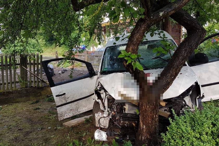 In diesem Moment sei der 38-jährige Riedenburger mit seinem VW-Caddy entgegengekommen, er konnte laut Polizei dem unvorhersehbaren Hindernis nicht mehr ausweichen. Sein Fahrzeug kollidierte mit dem Brett und das Trumm durchschlug die Windschutzscheibe. In der Folge habe der 38-Jährige die Kontrolle über seinen Lieferwagen verloren und sei von der Strecke abgekommen. Der VW durchbrach einen Zaun, durchfuhr ein Grundstück und prallte in einem weiteren Anwesen frontal gegen einen mächtigen Baum.